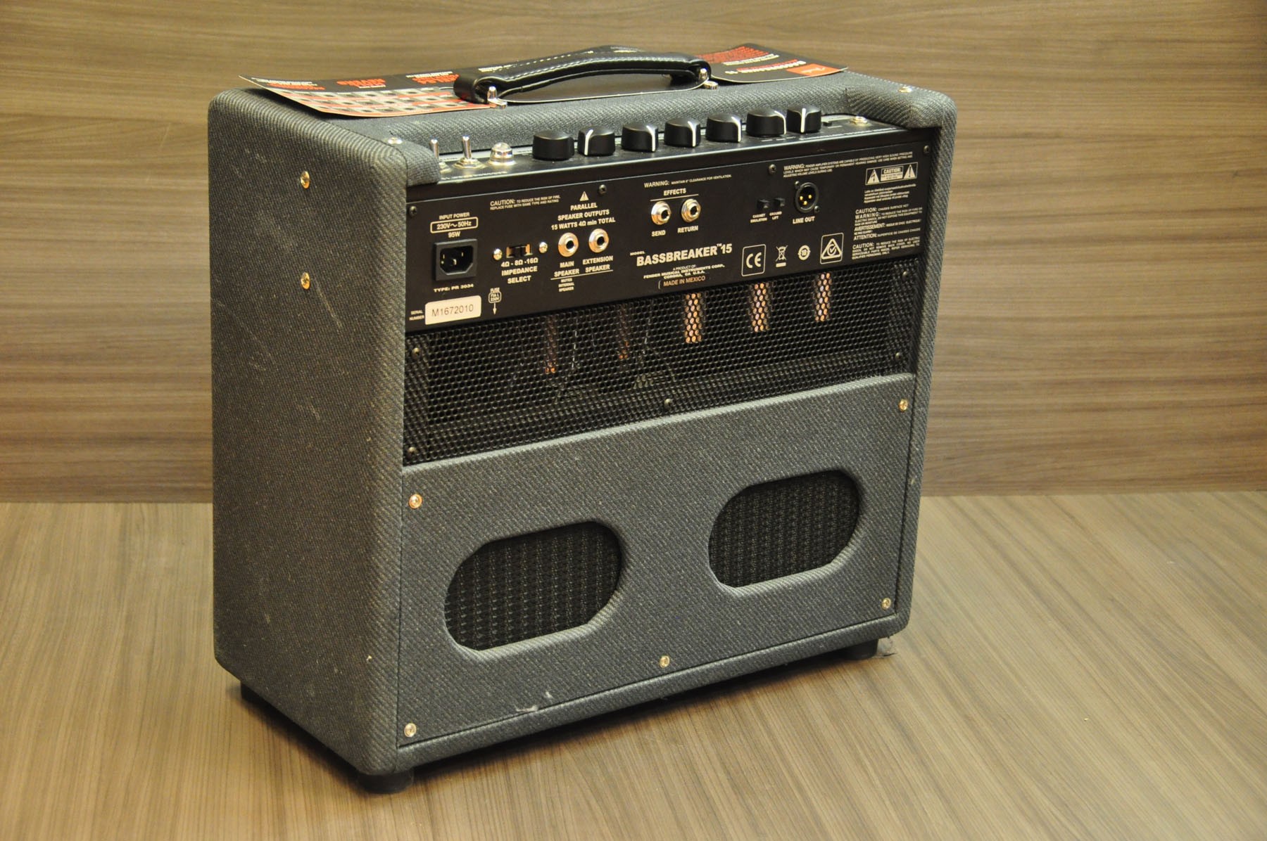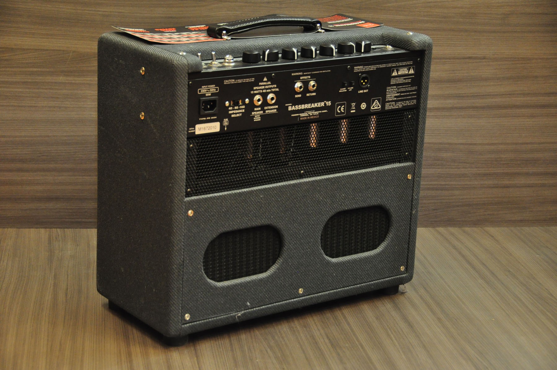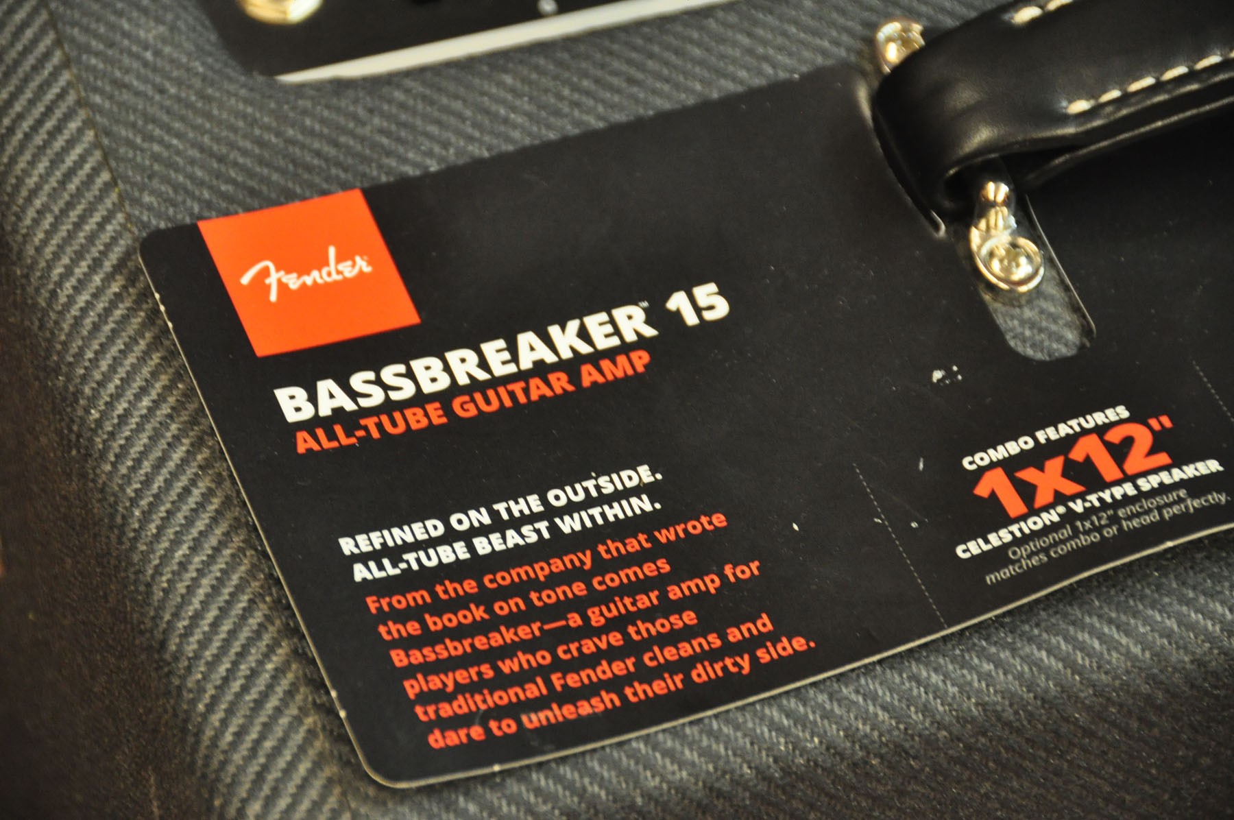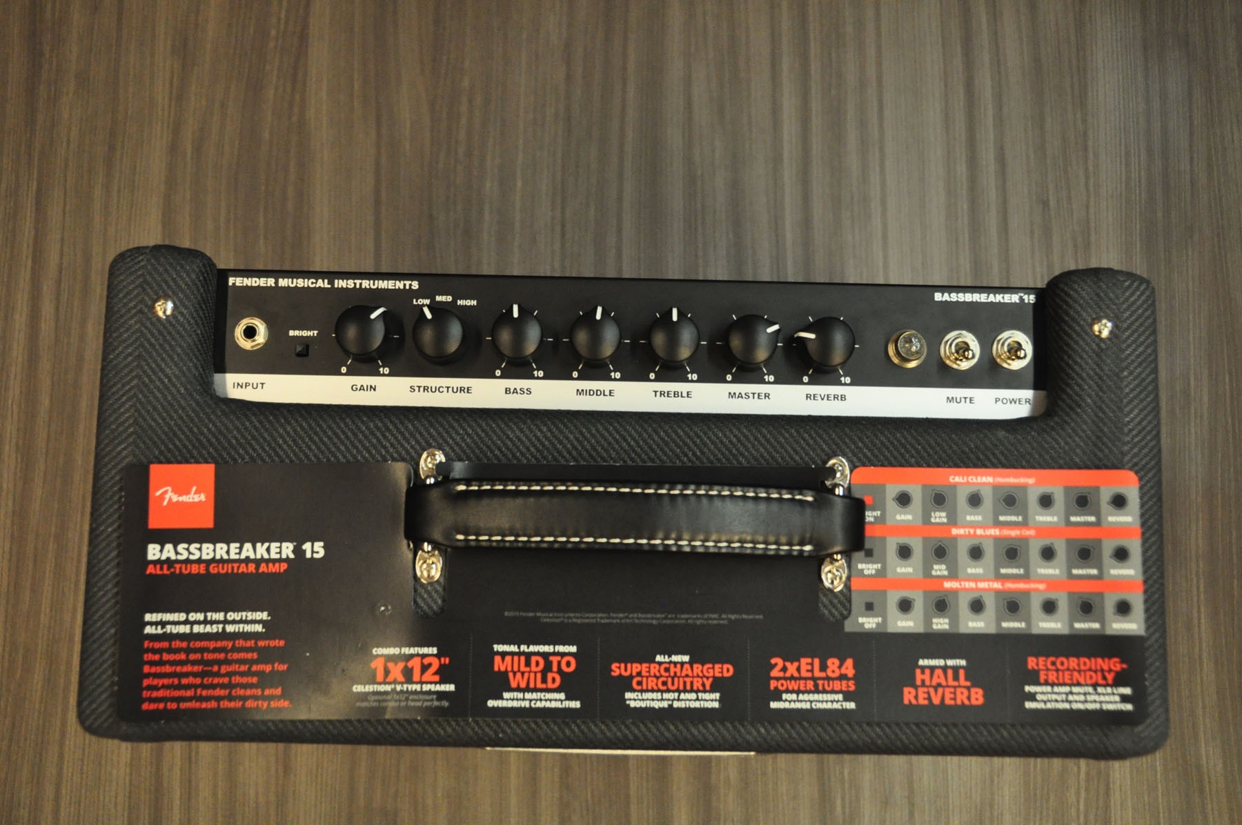 Superdotado y con una gran cantidad de funciones potentes y versátiles, el Bassbreaker 15 Combo es la más reciente evolución del clásico sonido Fender Bassman®. El circuito rediseñado rompe el molde dando diferentes tipos de saturación- puro sonido de válvulas que catapultaron el hard rock. En el escenario o en el estudio, este amplificador de primera línea te va a dar todo lo que necesitas para el rock. Este amplificador camaleónico tiene una poderosa gama de agresivos medios gracias a un trío de válvulas de previo 12AX7 y a dos válvulas de potencia EL84 que proporcionan 15 vatios de potencia. Con su interruptor de Saturación de tres posiciones tienes tres tipos de distorsión y ofrece sonidos que van de leves a salvajes, que puedes controlar con los potenciómetros tradicionales (conmutador brillo, agudos, medios y graves) y un canal de reverb digital que puedes ajustar al tamaño de la sala. Tiene funciones de grabación como un interruptor de potencia Amp Mute con luz piloto parpadeante y salida de línea XLR conmutable para emulación de altavoz con toma de masa, con lo que puedes sumergirte en la música sin necesidad de complicarte con más detalles técnicos. Además tiene un conmutador de salida de 4-8- 16 ohmios, salidas de ¼» para efectos, altavoces externos y loops. Este robusto combo tiene un único altavoz de 12 «8 ohmios Celestion® V para un sonido vintage actual y con suficiente volumen. Si le añades las cajas BB-112 o BB-212 puedes crear una mini columna para un sonido y apariencia extra. Debido a su sonido, características especiales y precio, el Bassbreaker 15 Combo está destinado a convertirse en el amplificador ideal, tanto para conciertos como grabaciones».
