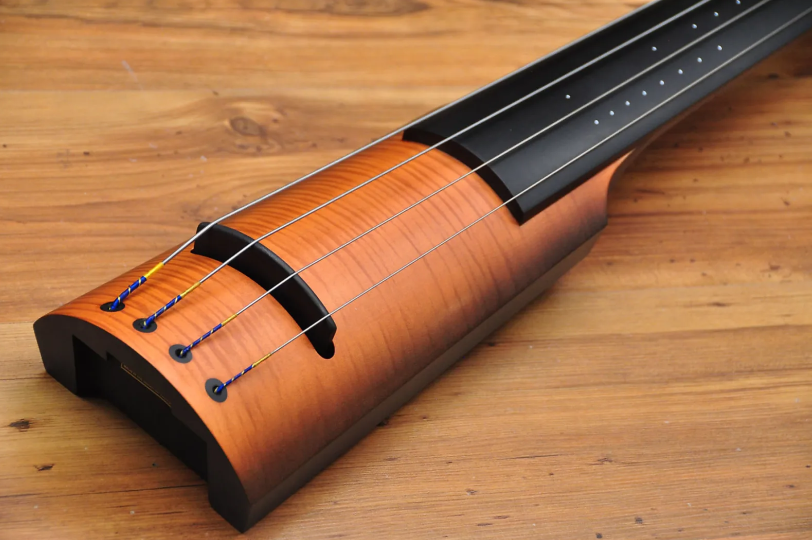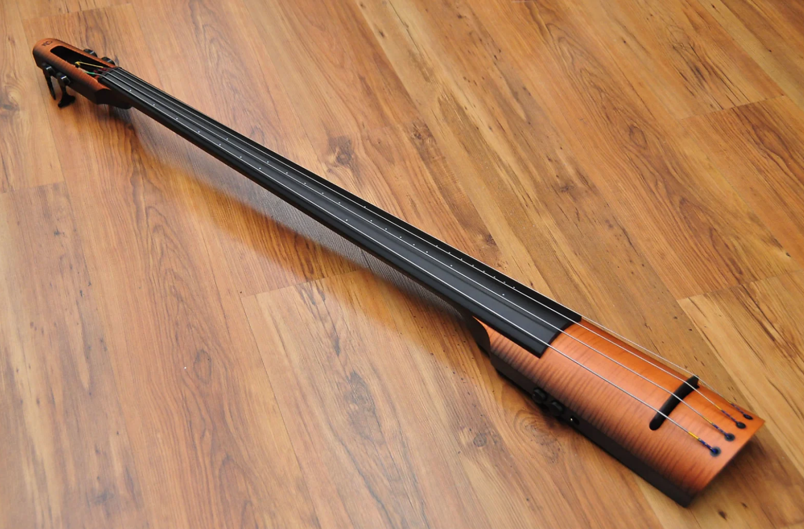 Ned Steinberger es uno de esos nombres absolutamente imprescindibles en la industria de la música, más concretamente dentro del terreno del diseño y la producción de instrumentos musicales desde la década de los 70 en el siglo XX y hasta nuestros días. A lo largo de todas estas décadas ha desarrollado instrumentos con su propio nombre Steinberger Instruments, pero también ha participado en numerosos diseños de éxito como el primer bajo Spector, llamado NS junto a Stuart Spector. También ha colaborado con Emmet Chapman, el creador del Chapman Stick con el NS Stick y ha desarrollado la popular pastilla de contrabajo The Realist junto a David Gage. Ya en la década de los 70 Ned Steinberger investigó sobre las propiedades de la fibra de carbono aplicada a la construcción de instrumentos musicales así como el desarrollo de instrumentos headless o sin pala, creando Steinberger Sound en 1980. Tras vender su compañía a Gibson en 1986 creó una nueva compañía llamada NS Design en 1990 centrándose en la producción de instrumentos de arco eléctricos, aunque con la reciente incorporación también de bajos eléctricos. Si bien hay en el mercado bastantes marcas aportando versiones eléctricas o silent de instrumentos de arco, lo cierto es que todas ellas intentan imitar al máximo las sensaciones al tocar y el sonido de los instrumentos acústicos, cosa que por lo general sólo consiguen a medias. La filosofía de NS Design es muy distinta: crear instrumentos nuevos, puramente eléctricos que aunque nacen de diseños tradicionales, van más allá y amplían las posibilidades de lo que se podría hacer con un contrabajo, cello, viola o violín acústicos de toda la vida. En palabras del propio Ned Steinberger: los instrumentos de cuerda frotada eléctricos existen desde la década de 1930, pero siempre han sido víctimas de la idea errónea de que un un instrumento eléctrico debería sonar exactamente como su predecesor acústico. Yo quiero ir un paso más allá, quiero ver de lo que son capaces estos instrumentos cuando se liberan de esa tarea. Si bien estos instrumentos también cumplen a la perfección el uso tradicional de los instrumentos de cuerda eléctricos como poder practicar sin molestar, viajar sin preocuparte demasiado por el instrumento o poderlo usar en directo de modo sencillo y eficaz, lo cierto es que esa sólo es parte de la historia. La verdadera revolución viene dada porque muchos músicos de cuerda están encontrando su verdadera voz con estos instrumentos. La empresa está basada en Nobleboro, Maine (USA) y allí se fabrican algunos de sus instrumentos además de ser la base logística de la empresa, pero la mayoría de los productos NS Design se construyen en la empresa NBE de la República Checa, una empresa con una larguísima trayectoria y una intachable reputación en lo que se refiere a la construcción de instrumentos musicales donde se combina a la perfección la luthería tradicional junto con los más avanzados procesos. De hecho nos consta que de allí salen algunos de los mejores instrumentos hechos en Europa ahora mismo. Es allí donde se hacen los instrumentos de las series CR y NXT. Por su parte la serie WAV que inicialmente se fabricó en China, se hace ahora en la India. Todos los instrumentos pasan por los talleres de NBE en la República Checa antes de ser enviados a los distribuidores, de modo que el control de calidad está más que garantizado. ____________ Este es el contrabajo NS Design NXT4a. Está hecho en la República Checa y representa la línea intermedia de producto, por encima de la serie WAV y por debajo de la serie CR Se trata de un instrumento con escala 3/4 tradicional de contrabajo pero con estas características especiales: – No hay unión del mástil al cuerpo en la posición habitual de un contrabajo clásico. Se trata de un mástil continuo que va de la cabeza hasta después del puente, creando una superficie que favorece enormemente el sustain. Ahí radica la primera e importantísima diferencia con un contrabajo acústico y con cualquier otro contrabajo eléctrico. – Este diseño permite que puedas tocar sin problemas en cualquier zona del instrumento. Si vienes del contrabajo clásico o de jazz, esto te resultará extraño unos minutos pero la verdad es que enseguida te adaptas. Puedes optar por tocar usando capotastro (pulgar sobre el diapasón) en la segunda octava o bien mantener el pulgar en la parte posterior, como si fuera un bajo eléctrico. – Sistema patentado Polar de pastilla que capta la vibración de las cuerdas tanto en horizontal como en vertical – Tapa de arce flameada acabada en Sunburst Mate. – Diapasón es de ébano e incluye puntos guía como referencia de afinación en 2 octavas. La curva permite tocarlo con arco sin problema. – Las cuerdas que vienen con él son DAddarioNSFW610 específicas para contrabajo eléctrico. Estas cuerdas son más finas que las normales, y producen también más sustain, pero es posible usar cuerdas normales como Thomastik y otras si lo que quieres es un tacto y sonido más tradicional. En ese caso las cuerdas se enganchan en la parte de atrás para respetar la distancia trandicional entre cordal y puente en un contrabajo de toda la vida. – Si necesitas un sonido más tradicional de contrabajo, aparte de ponerle unas cuerdas de toda la vida, puedes usar un poco de espuma debajo de las cuerdas justo en el puente. Al reducir el sustain te acercarás mucho más al sonido que normalmente se requiere para estilos como Latin, Americana, etc. Incluso con cuerdas de Nylon puedes conseguir un sonido para Rockabilly muy apropiado. – La electrónica, como cabría esperar viniendo de Steinberger, es impecable Pese a ser un instrumento 100% pasivo, la señal es excelente y la ausencia de ruido total. Los controles son Volumen y Tono y tenemos un Interruptor que te permite elegir entre modo Pizzicato (sonido muy definido, con bastante sustain) y modo Arco (perfe