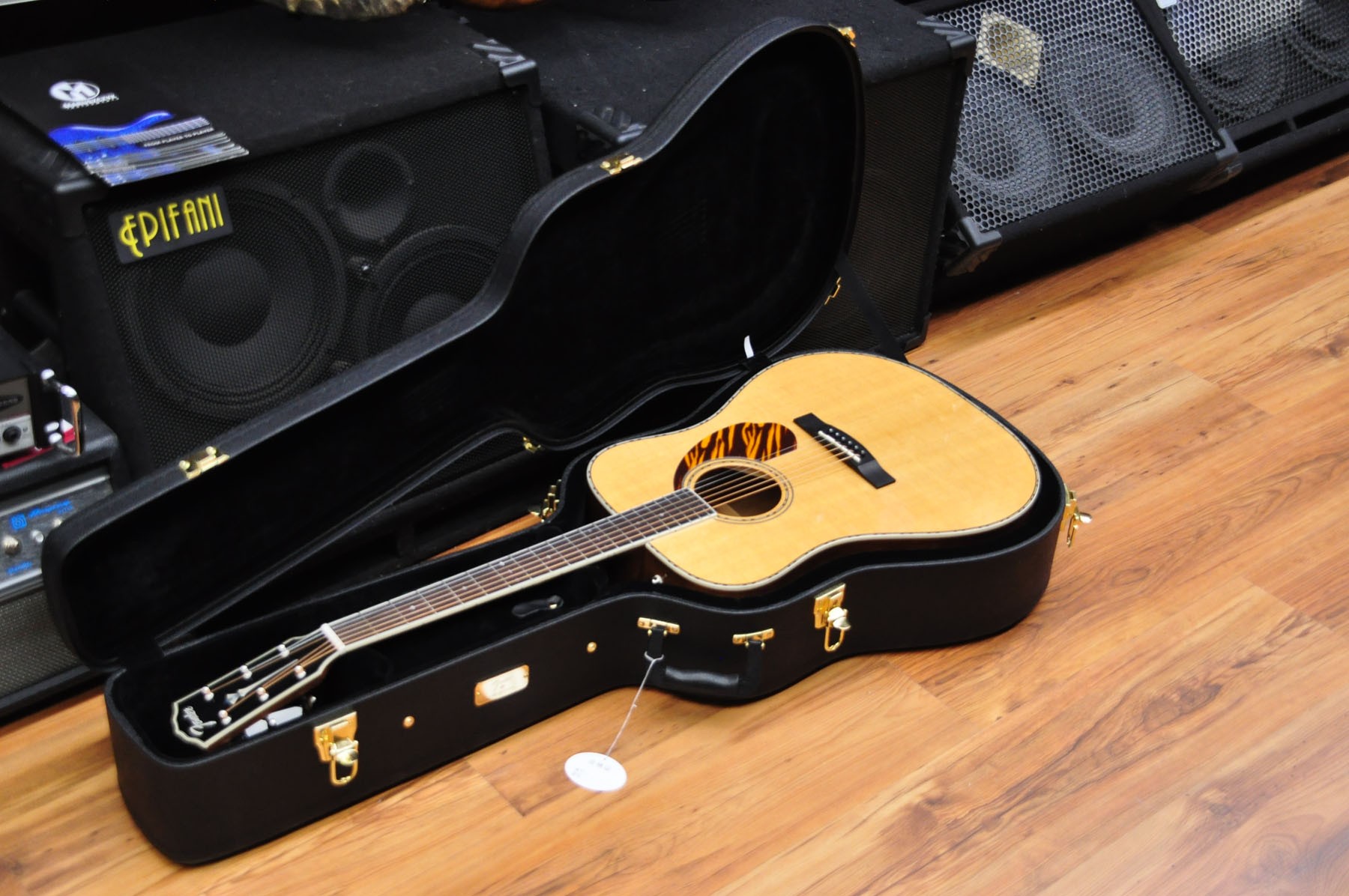 | La Paramount PD-220E combina artesanía de vanguardia con detalles de inspiración vintage, ofreciendo lo mejor de ambos mundos. Construida con una tapa de abeto macizo combinada con aros y fondo de caoba maciza, la PD -220E cuenta con un patrón de refuerzo de varillas internas compensado en X que ha sido cuidadosamente refinado para optimizar la resonancia y el tono Una nueva pastilla Sonitone Plus diseñada por Fender y Fishman amplifica el tono completo y equilibrado de la forma del cuerpo Dreadnought de la PD-220E, mientras que los controles montados en la boca conservan la estética vintage. Debajo de la tapa harmónica, una pastilla sensible mejora las vibraciones de la caja de resonancia que se puede combinar con la pastilla Sonicore debajo del puente. Los detalles cosméticos actualizados incluyen incrustaciones de perla en forma de copo de nieve en el diapasón, filetes de plumas, rosetas y tiras traseras, y un golpeador Black o Tiger Stripe. La PD-220E también cuenta con un puente y diapasón de ovangkol, mástil de caoba delgado, cejilla y selleta de hueso, y viene con un estuche rígido. CARACTERÍSTICAS Patrón de refuerzo interno actualizado Tapa maciza de abeto, aros y fondo de caoba maciza New Fender/Fishman® Sonitone Plus pickup with piezo and transducer Nueva pastilla Fender/Fishman Sonitone Plus con piezo y transductor Incrustaciones de copos de nieve. Golpeador Tiger Stripe Incluye estuche rígido. DISEÑO TOTALMENTE SÓLIDO PREAMPLIFICADOR SONITONE PLUS DISEÑADO POR FENDER Y FISHMAN ROSETÓN ESTILO PLUMA Y FILETEADO ACABADO SATINADO EN EL MÁSTIL. CUERPO DREADNOUGHT ESTUCHE PERFECTO |
