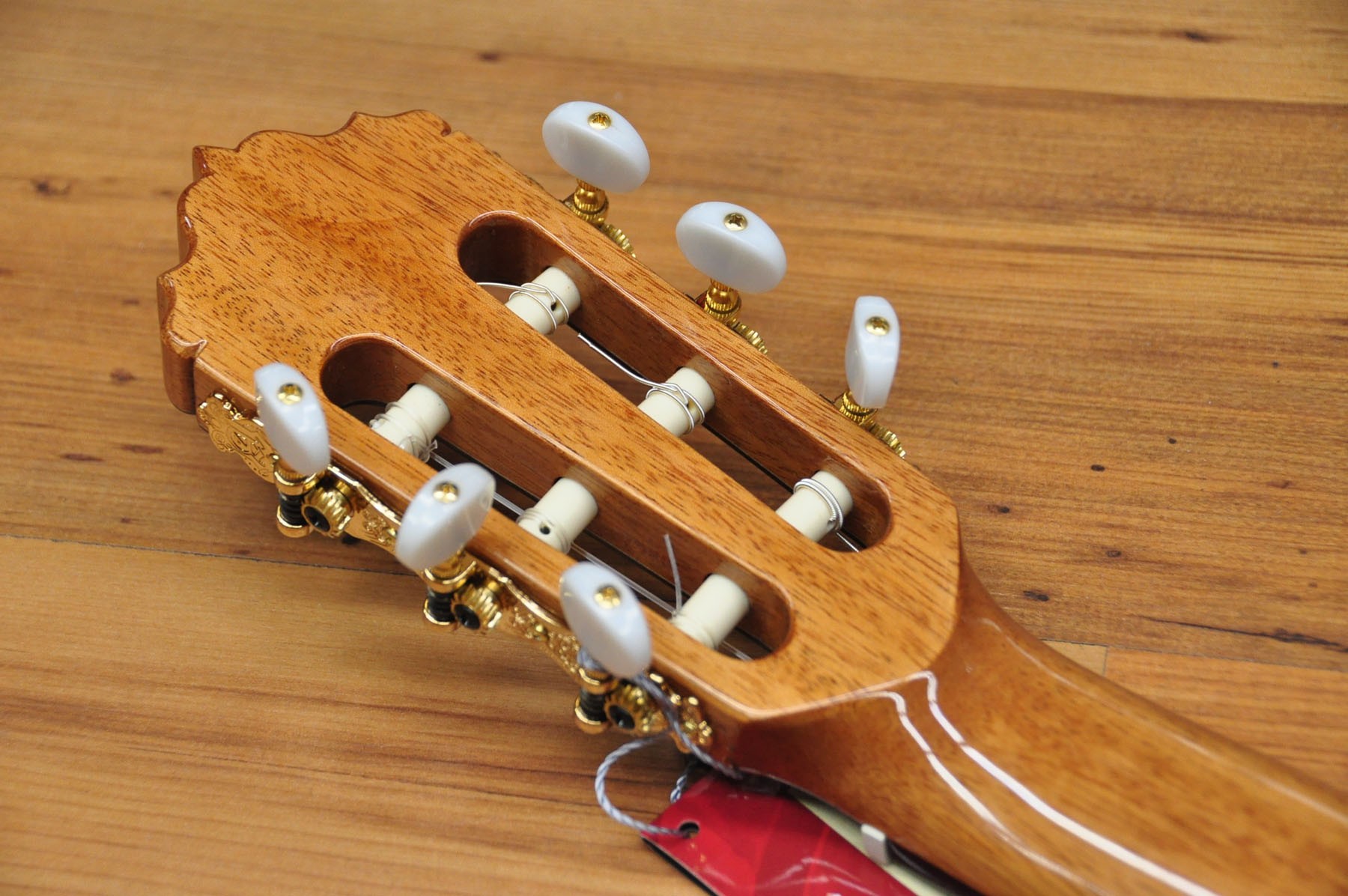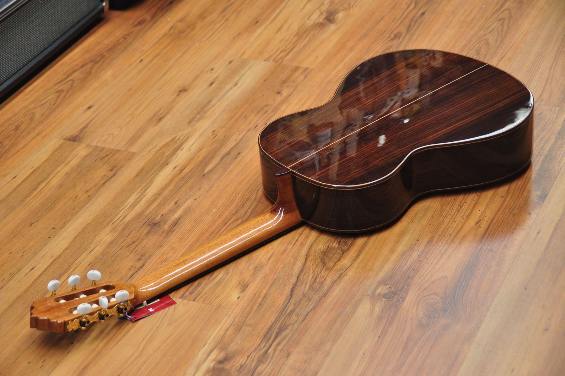 El modelo 5 P de Guitarras Alhambra constituye un paso más respecto al modelo 4p. Se modifica la construcción de la caja para otorgarle mayor robustez y se mantienen detalles característicos como las cuatro capas de barniz, el diapasón con madera de ébano, clavijeros de calidad superior y la utilización de un hermoso Palosanto de India utilizado para los aros y fondo. Un conjunto de características que hacen del modelo 5 P una guitarra adecuada para interpretar multitud de estilos musicales, cómoda, con buen sonido y que responde. SONIDO EQUILIBRADO Y CON BUENA RESPUESTA Para la elaboración de la caja de resonancia del modelo 5 P, que junto a la tapa es lo que más influye en el sonido de la guitarra, se ha utilizado un diseño de varetaje que consiste en una delgada madera que es apoyada por siete barras, dos de ellas en la parte inferior. Este detalle de construcción contribuye a conseguir un instrumento más resistente, pero a la vez ligero, así como a mejorar el sonido, otorgándole más cuerpo, calidez y riqueza. Para los huesos, tanto en silleta como en cejuela, se ha utilizado melamina, un material altamente transmisor del sonido. Un sonido que en este caso se podría describir como más definido, melodiosos y con un tono constante en todo el mástil. Ejemplo de ello es la calidad sonora de las tres primeras cuerdas en el traste número 12. DISPONIBLE EN CUT AWAY Y CUERPO ESTRECHO Las interesantes características del modelo 5 P lo convierten en una guitarra adecuada para interpretar multitud de estilos musicales, es por ello que también está disponible en formato Cut Away (CW), para poder tener mayor accesibilidad a la parte baja del diapasón, y en formato de cuerpo estrecho (CT) para mejorar la interpretación en posición vertical. Además, este instrumento tiene varias opciones de tamaño, así como la posibilidad de construcción para zurdos. BUENAS PRESTACIONES La guitarra clásica Alhambra modelo 5 P es un instrumento con unas prestaciones muy interesantes y que se engloba en la Línea Conservatorio, un instrumento equilibrado y con cualidades para interpretar diferentes estilos musicales. Una guitarra en la que se ha cuidado el diseño y la elaboración, de manera especial en lo que respecta a la acción de las cuerdas, para conseguir un instrumento muy cómodo, pero a la vez con un sonido dulce y potente.