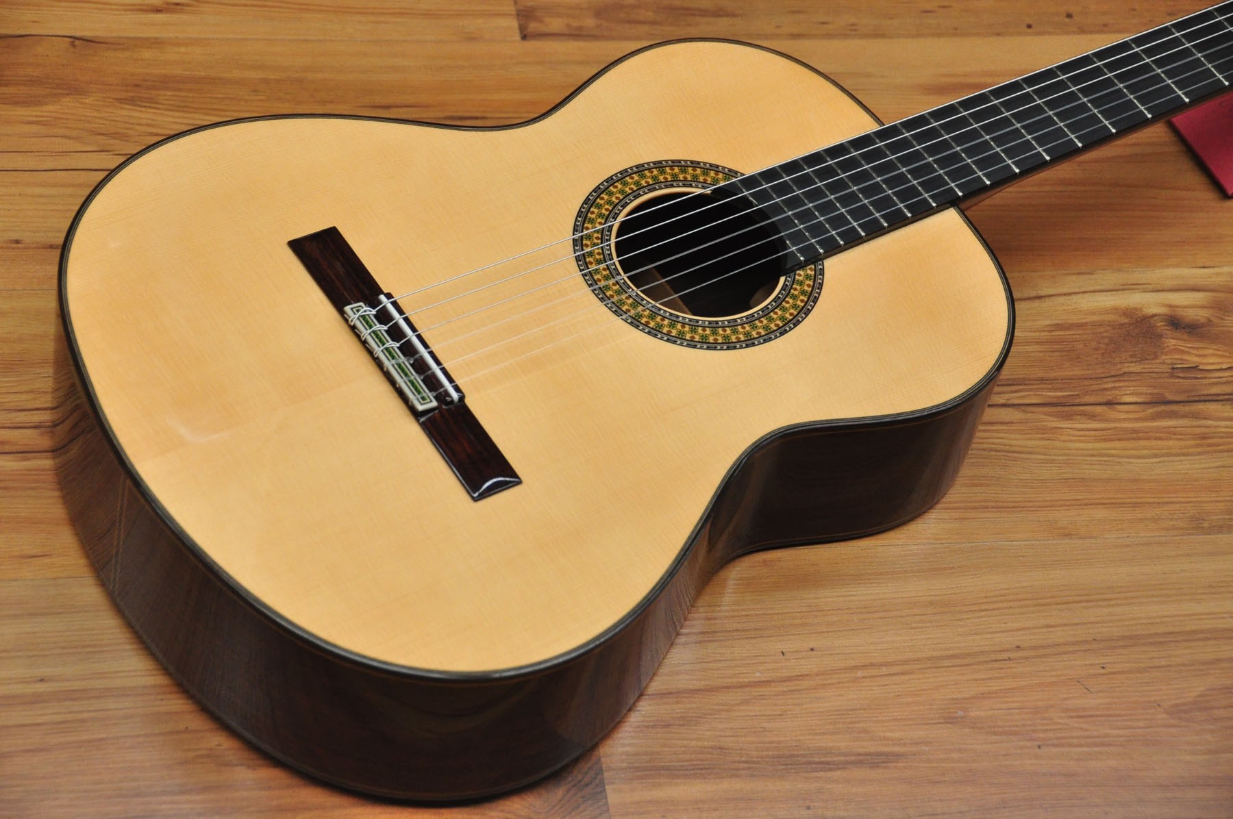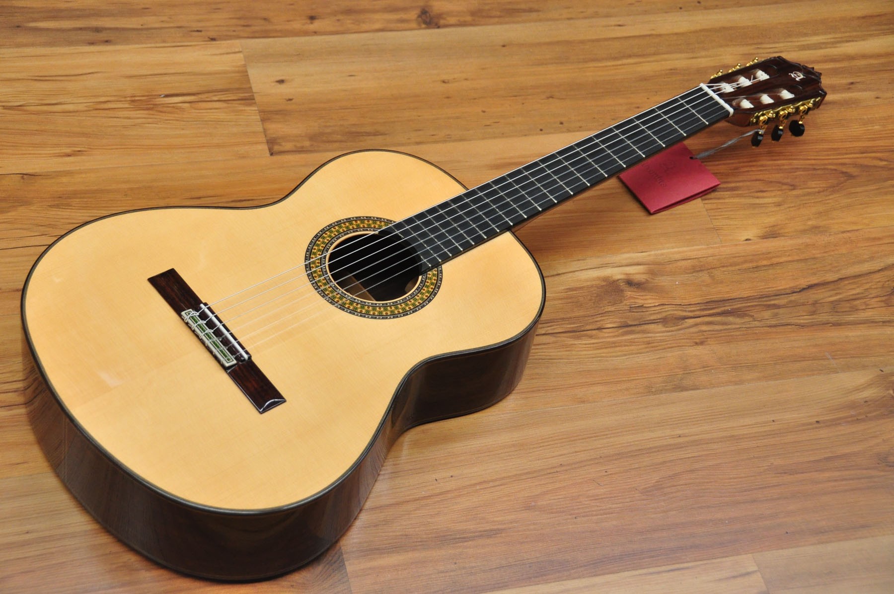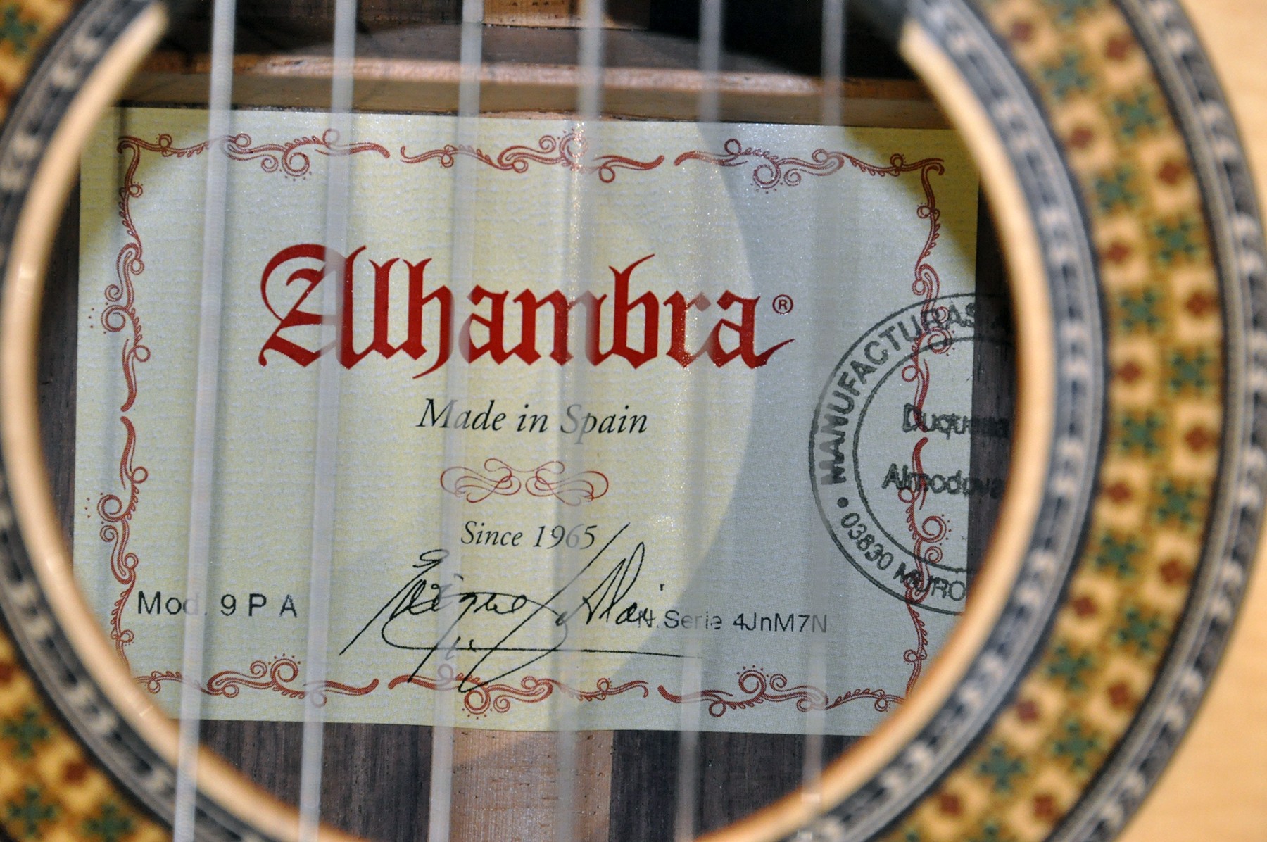 El modelo 9 P de Guitarras Alhambra es un instrumento que cuando se tiene entre las manos, inmediatamente transmite buenas sensaciones. Una guitarra equilibrada en todos los aspectos, robusta, con medidas de concierto y una acción de las cuerdas perfecta. Una acción de cuerdas que es lo suficientemente alta, pero al mismo tiempo es extremadamente cómoda. SONIDO PROFUNDO CON VOLUMEN Y PROYECCIÓN El modelo 9 P cuenta con un diseño de barras armónicas en forma de puente que favorece el máximo volumen y la proyección. Una proyección que es increíble y describe una gran guitarra. En lo que respecta al sonido, el modelo 9 P cuenta con unos bajos, medios y agudos bien equilibrados, totalmente compensados. Está elaborado con hueso en la silleta y cejuela, un material que se ha utilizado tradicionalmente y cuyas capacidades de transmisión del sonido son excepcionales. En el modelo 9 P se aplica un acabado de laca nitro en la tapa, un tipo de barniz que aumenta la capacidad de vibración. Una característica que unida a la selección de maderas y al tipo de construcción, produce un sonido profundo. Una guitarra con una primera cuerda que enamora por su brillo y calidad y con muchas posibilidades para la interpretación. ARTESANÍA Y EXPERIENCIA Desde el modelo 8 P al 11 P, las guitarras se realizan por un grupo reducido de artesanos, aplicando en ellas su experiencia y saber hacer. Precisamente en los acabados de este modelo se puede observar el importante trabajo artesanal donde, combinado con un precioso Palosanto de India y una tapa de Cedro rojo seleccionada, se consigue un instrumento con una imagen refinada y de altas prestaciones.