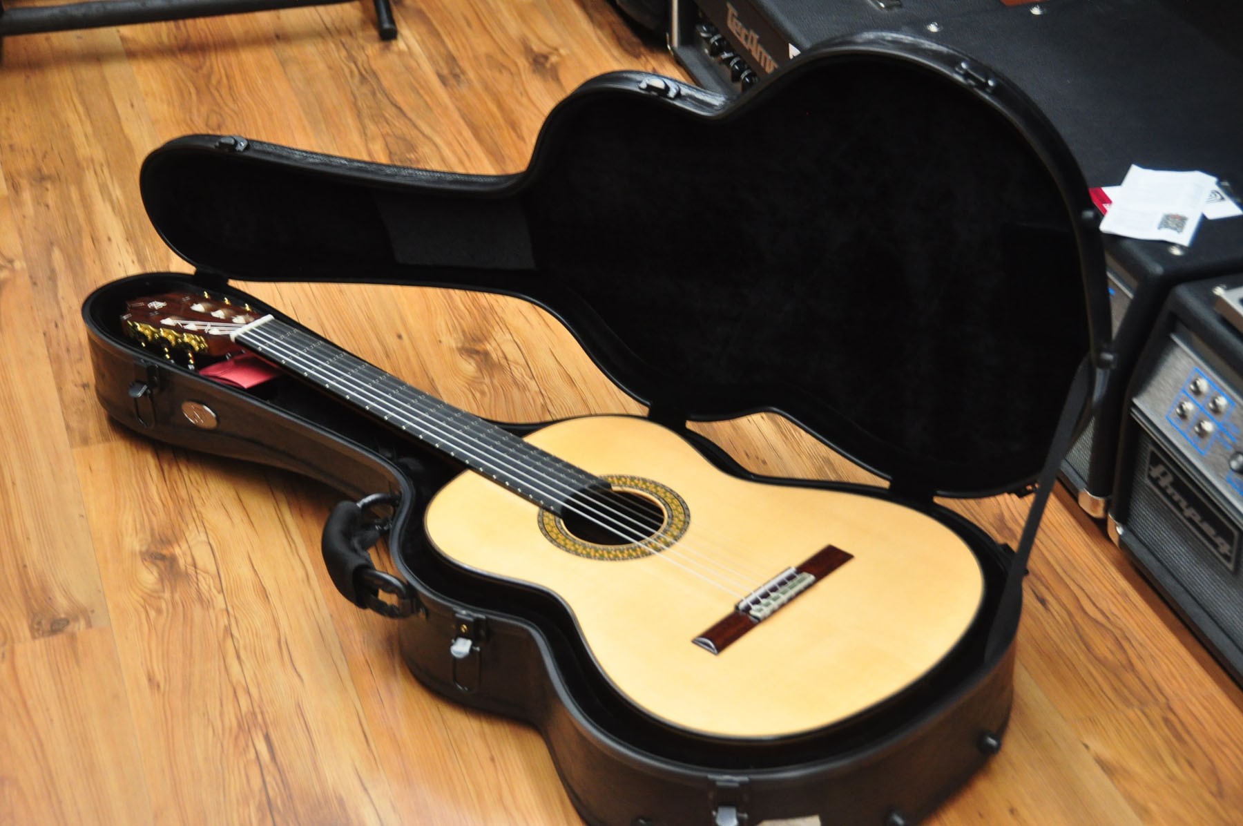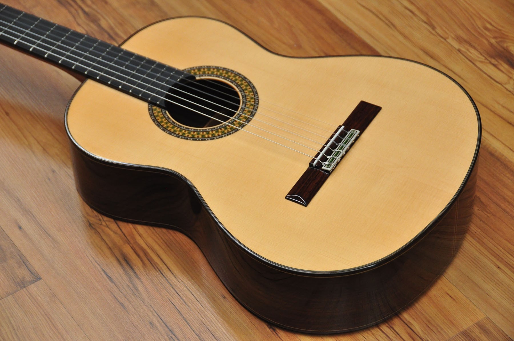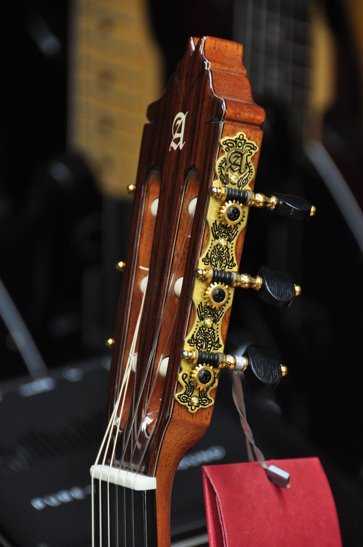 El modelo 9 P de Guitarras Alhambra es un instrumento que cuando se tiene entre las manos, inmediatamente transmite buenas sensaciones. Una guitarra equilibrada en todos los aspectos, robusta, con medidas de concierto y una acción de las cuerdas perfecta. Una acción de cuerdas que es lo suficientemente alta, pero al mismo tiempo es extremadamente cómoda. SONIDO PROFUNDO CON VOLUMEN Y PROYECCIÓN El modelo 9 P cuenta con un diseño de barras armónicas en forma de puente que favorece el máximo volumen y la proyección. Una proyección que es increíble y describe una gran guitarra. En lo que respecta al sonido, el modelo 9 P cuenta con unos bajos, medios y agudos bien equilibrados, totalmente compensados. Está elaborado con hueso en la silleta y cejuela, un material que se ha utilizado tradicionalmente y cuyas capacidades de transmisión del sonido son excepcionales. En el modelo 9 P se aplica un acabado de laca nitro en la tapa, un tipo de barniz que aumenta la capacidad de vibración. Una característica que unida a la selección de maderas y al tipo de construcción, produce un sonido profundo. Una guitarra con una primera cuerda que enamora por su brillo y calidad y con muchas posibilidades para la interpretación. ARTESANÍA Y EXPERIENCIA Desde el modelo 8 P al 11 P, las guitarras se realizan por un grupo reducido de artesanos, aplicando en ellas su experiencia y saber hacer. Precisamente en los acabados de este modelo se puede observar el importante trabajo artesanal donde, combinado con un precioso Palosanto de India y una tapa de Cedro rojo seleccionada, se consigue un instrumento con una imagen refinada y de altas prestaciones.