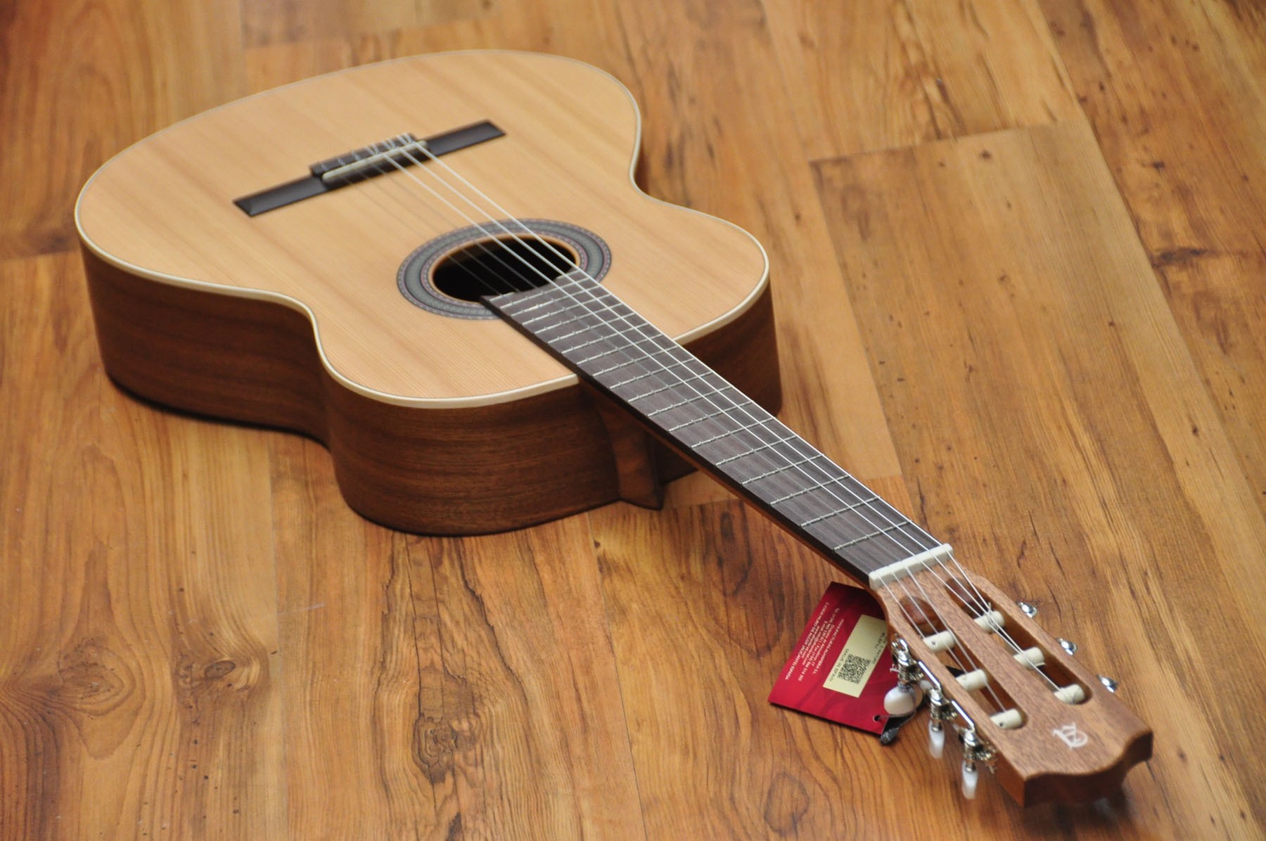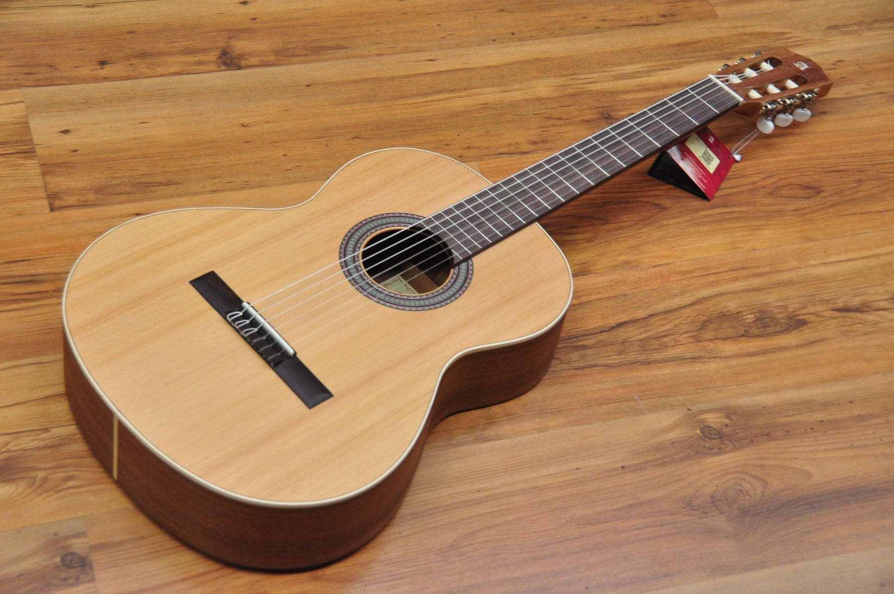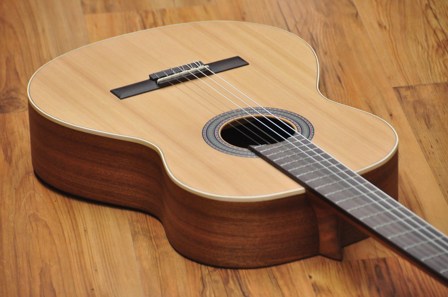 En este instrumento se han reducido los pasos del proceso de construcción, así como el coste total de producción. Además, es importante resaltar que la Alhambra Z-Nature, al igual que el resto de instrumentos de Guitarras Alhambra, se construye completamente en España. Un proceso de elaboración totalmente controlado y con todas las garantías en el producto, en el respeto al medio ambiente, responsabilidad social y control de productos tóxicos. Con su acabado satinado natural, los poros de la guitarra Z-Nature permanecen abiertos, lo que permite que el sonido de la guitarra tenga una gran resonancia. Con el modelo Z-Nature se ha conseguido definir un instrumento con un gran volumen y una comodidad excelente. Todo aquel que prueba esta guitarra, queda gratamente sorprendido por su potencia, calidad tímbrica y tacto. Las piezas de la silleta y cejuela son de melamina, un material que transmite mucho el sonido y que ofrece un sonido redondo, muy equilibrado. El barniz de poro abierto, además de conseguir una hermosa guitarra, reduce el peso total. El poco peso es muy interesante para los más pequeños porque tienen que cargar con ella para desplazarse y la reducción de peso es muy importante. El modelo Z-Nature tiene un diseño sencillo pero muy cuidado, un diseño que expresa su belleza natural. Se ha utilizado un mango de Samanguila. Con una tapa maciza de Cedro, el modelo Z-Nature es una opción segura para principiantes con una relación calidad-precio excelente. UNA INTERESANTE OPCIÓN PARA LA DIVERSIÓN Como se ha descrito anteriormente, se trata de un modelo con buen acabado, resistente y con una buena relación calidad – precio, pero además con un potente sonido.