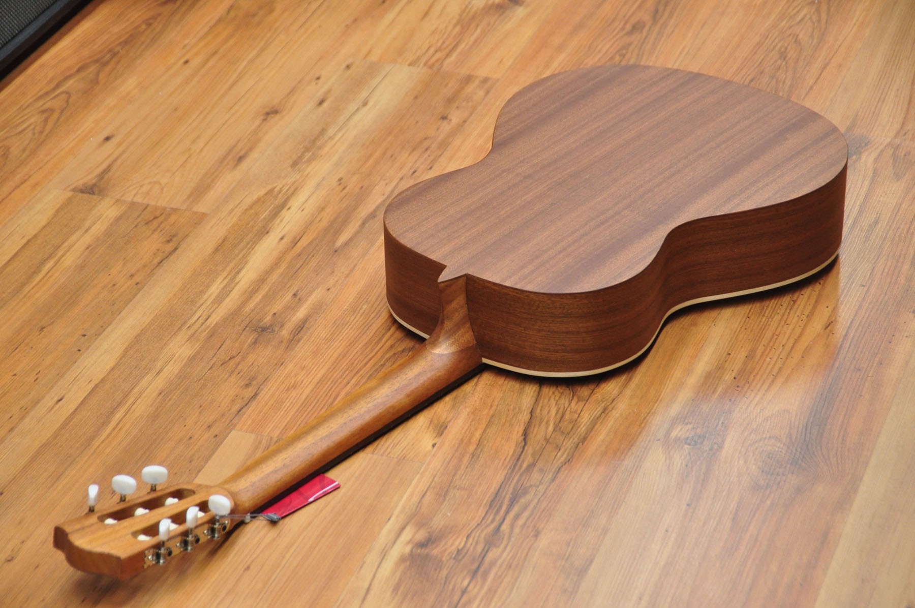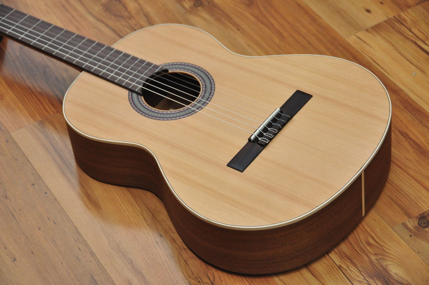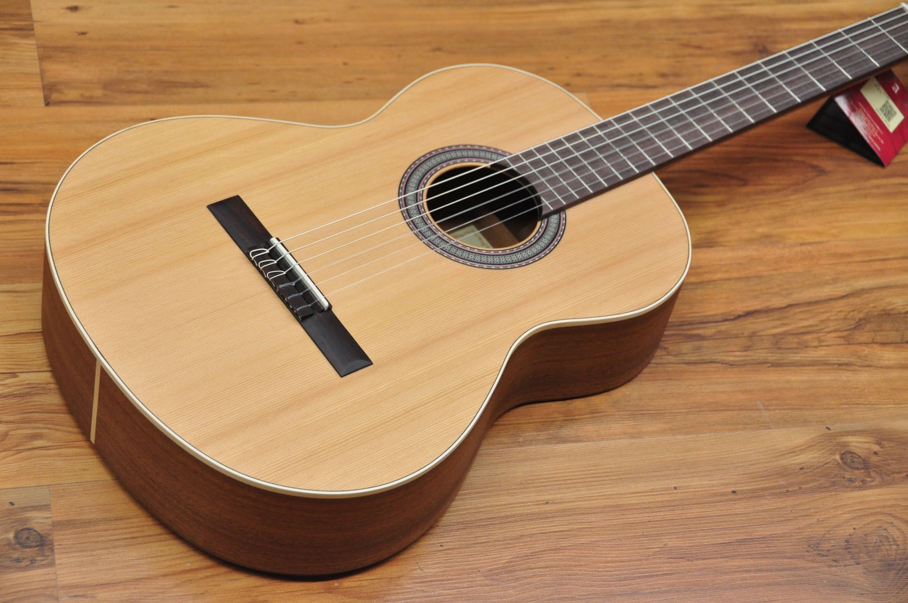 En este instrumento se han reducido los pasos del proceso de construcción, así como el coste total de producción. Además, es importante resaltar que la Alhambra Z-Nature, al igual que el resto de instrumentos de Guitarras Alhambra, se construye completamente en España. Un proceso de elaboración totalmente controlado y con todas las garantías en el producto, en el respeto al medio ambiente, responsabilidad social y control de productos tóxicos. Con su acabado satinado natural, los poros de la guitarra Z-Nature permanecen abiertos, lo que permite que el sonido de la guitarra tenga una gran resonancia. Con el modelo Z-Nature se ha conseguido definir un instrumento con un gran volumen y una comodidad excelente. Todo aquel que prueba esta guitarra, queda gratamente sorprendido por su potencia, calidad tímbrica y tacto. Las piezas de la silleta y cejuela son de melamina, un material que transmite mucho el sonido y que ofrece un sonido redondo, muy equilibrado. El barniz de poro abierto, además de conseguir una hermosa guitarra, reduce el peso total. El poco peso es muy interesante para los más pequeños porque tienen que cargar con ella para desplazarse y la reducción de peso es muy importante. El modelo Z-Nature tiene un diseño sencillo pero muy cuidado, un diseño que expresa su belleza natural. Se ha utilizado un mango de Samanguila. Con una tapa maciza de Cedro, el modelo Z-Nature es una opción segura para principiantes con una relación calidad-precio excelente. UNA INTERESANTE OPCIÓN PARA LA DIVERSIÓN Como se ha descrito anteriormente, se trata de un modelo con buen acabado, resistente y con una buena relación calidad – precio, pero además con un potente sonido.