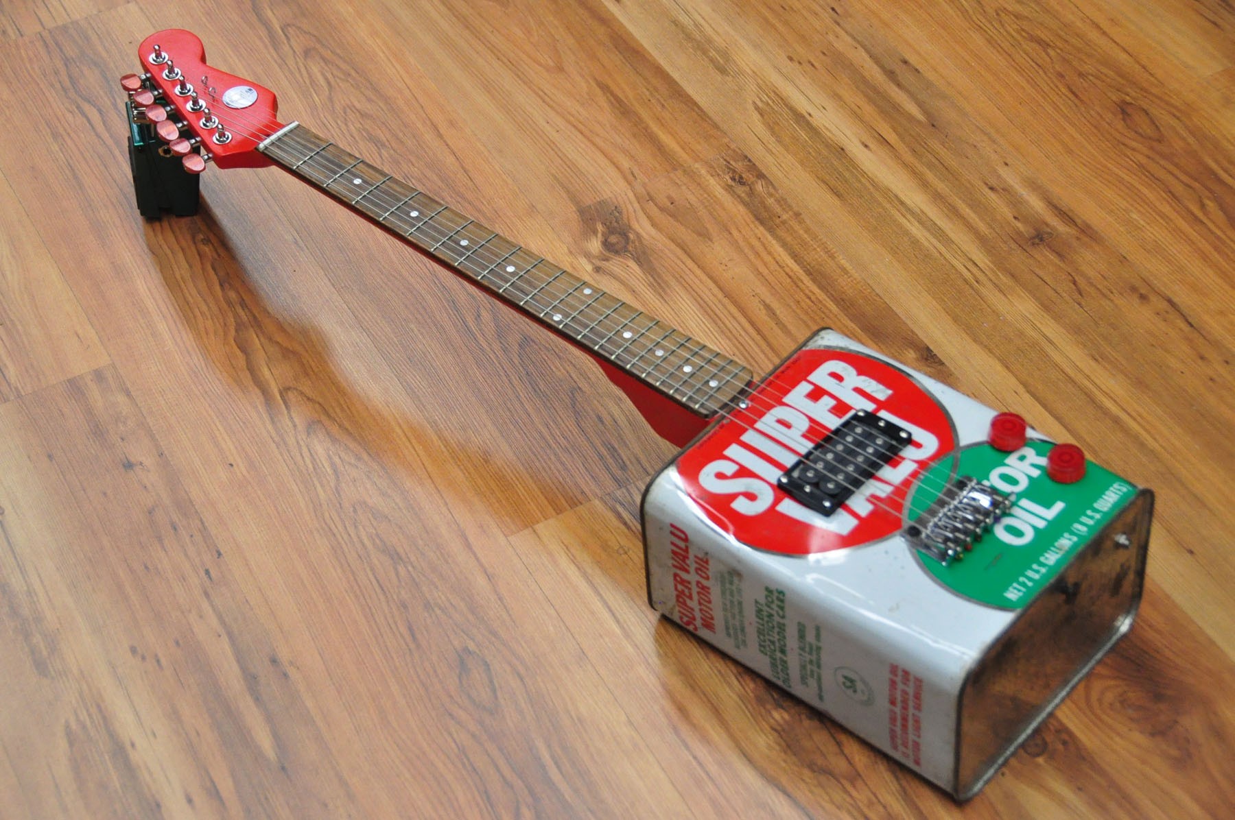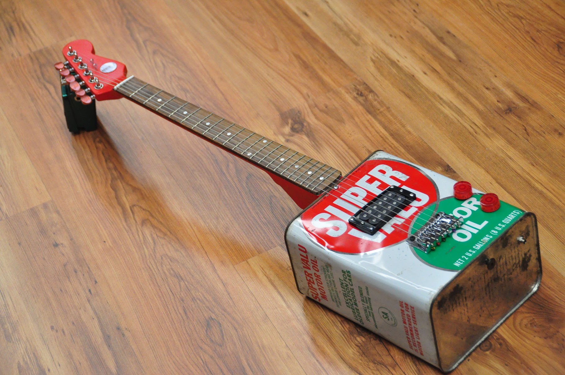 While brothers Adam and Shaun Lee were visiting their hometown of Johannesburg, South Africa, Shaun saw many of the street musicians using unconventional materials to create music. While he was impressed with the musician’s ingenuity and resourcefulness, he especially appreciated the sound quality of the oil-can guitar. When he arrived back in the U.S., he started building his own oil can and lunchbox guitars out of completely recycled materials in his parents’ basement in Marietta, Georgia.