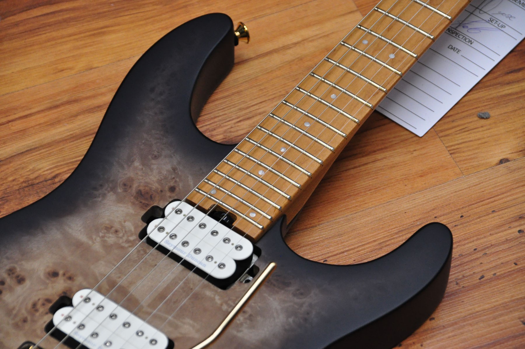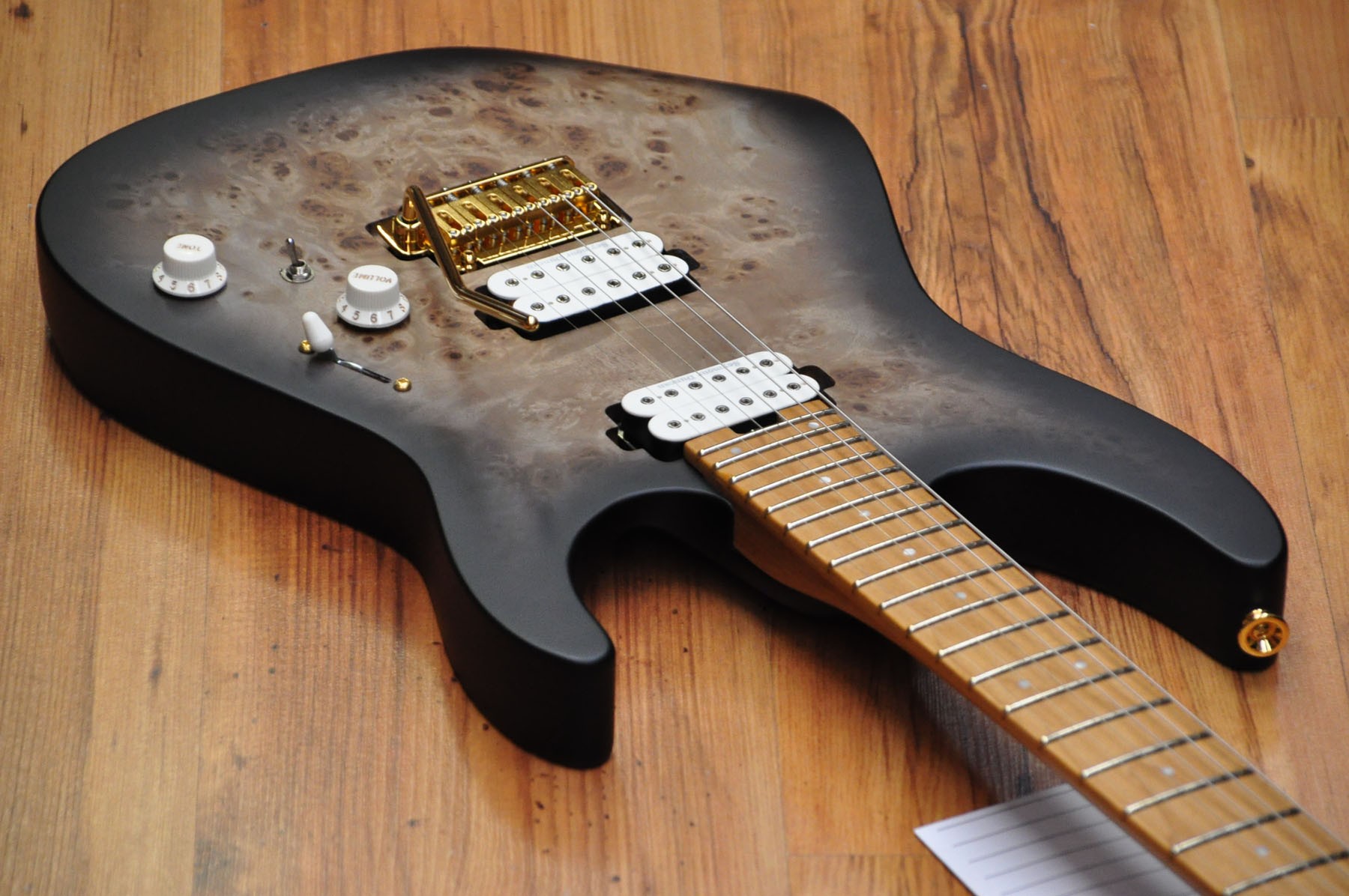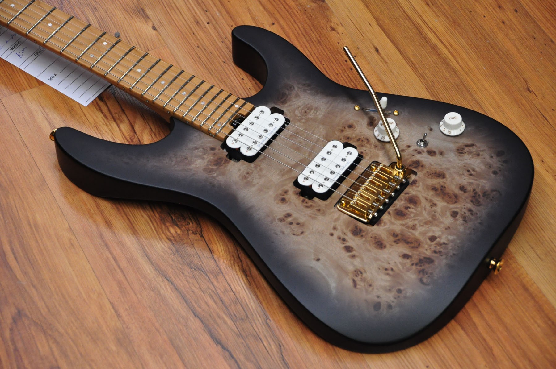 Charvel Pro-Mod DK24P HH 2PT CM Poplar Burl – Transparent Black Burst
