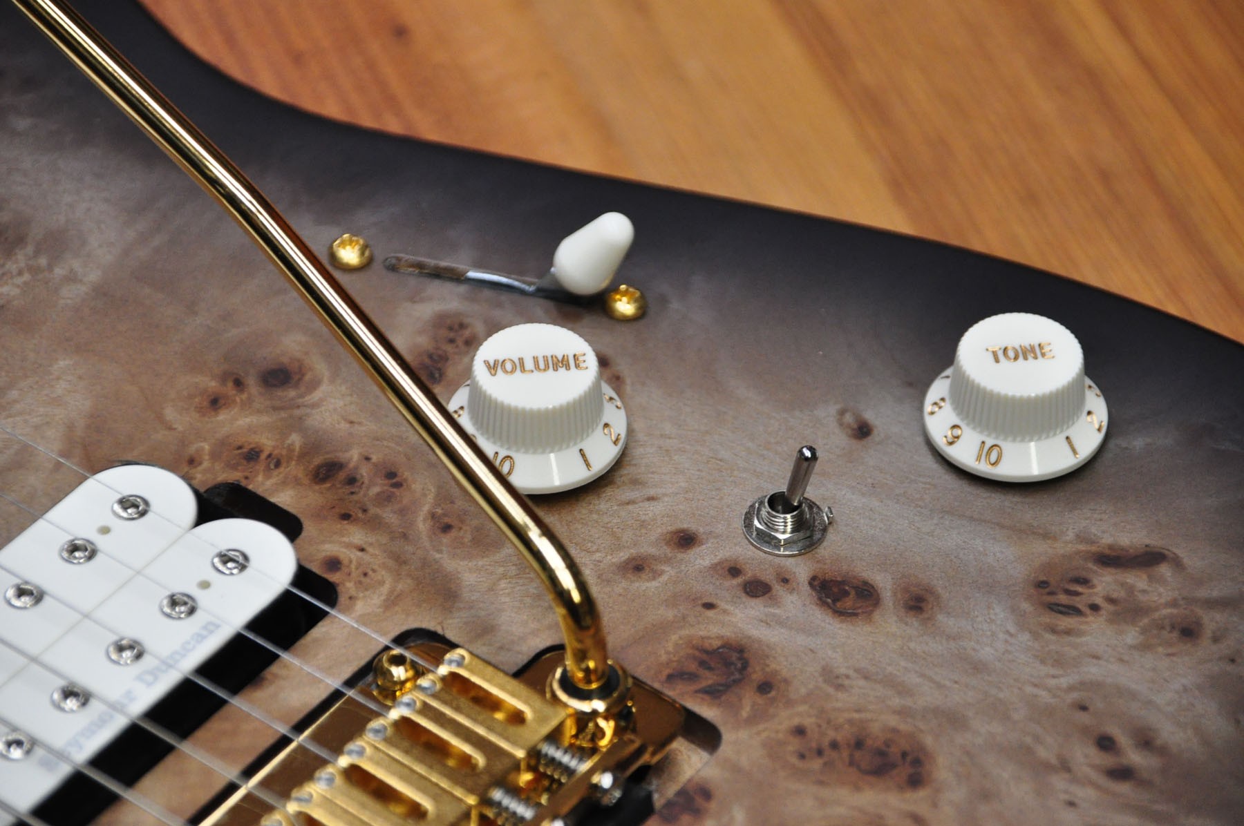 Charvel® le da la vuelta al alto rendimiento moderno con el nuevo Pro-Mod DK24 HH 2PT CM Poplar Burl, un instrumento de bronce para el guitarrista progresivo que busca un espectro de sonido sin igual.