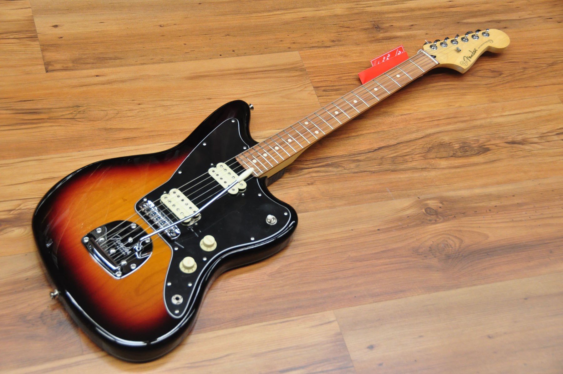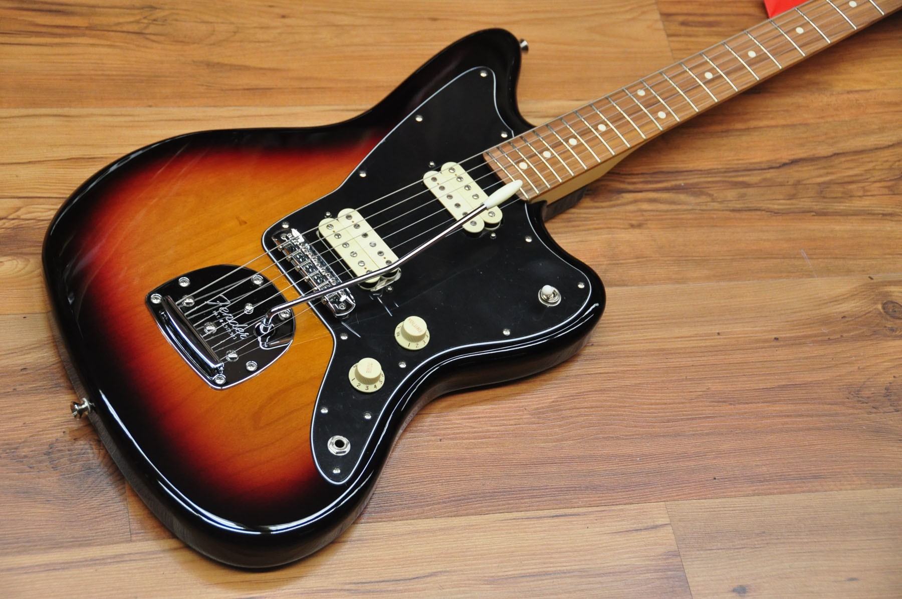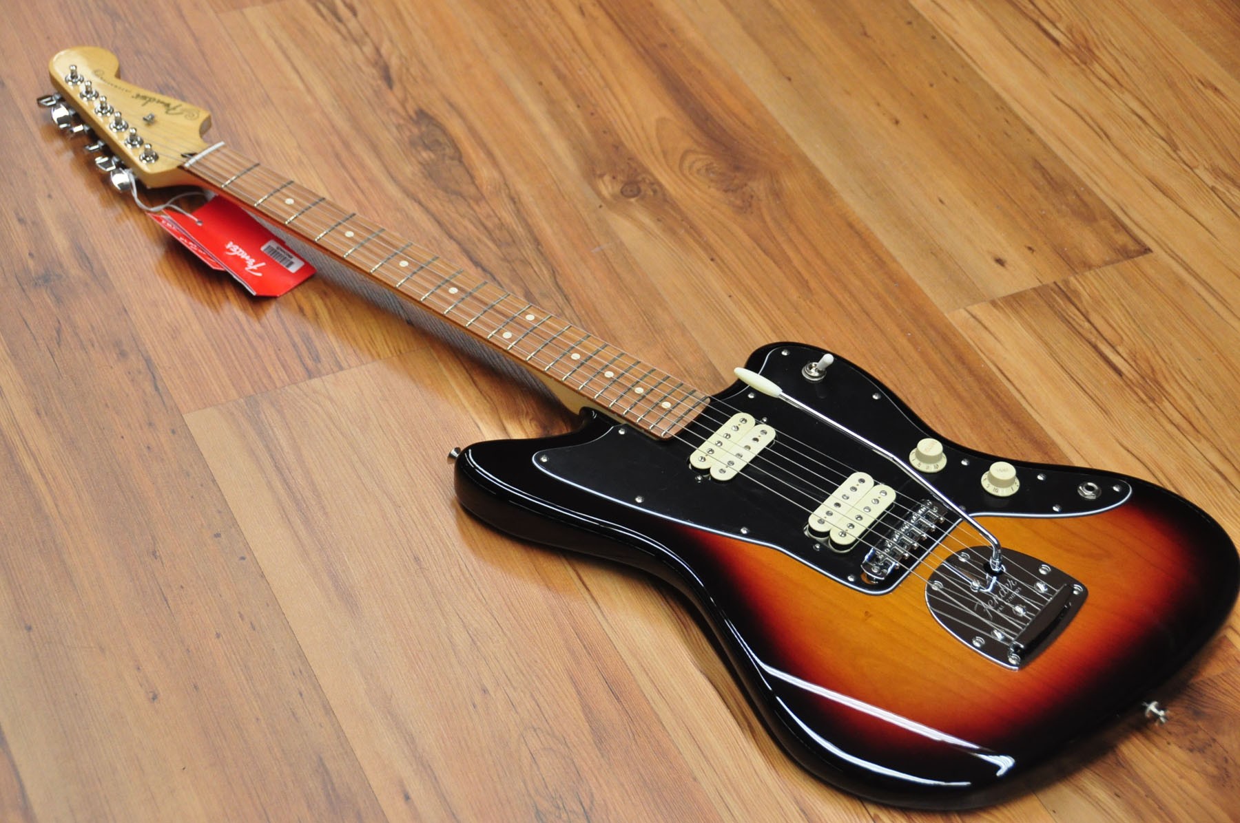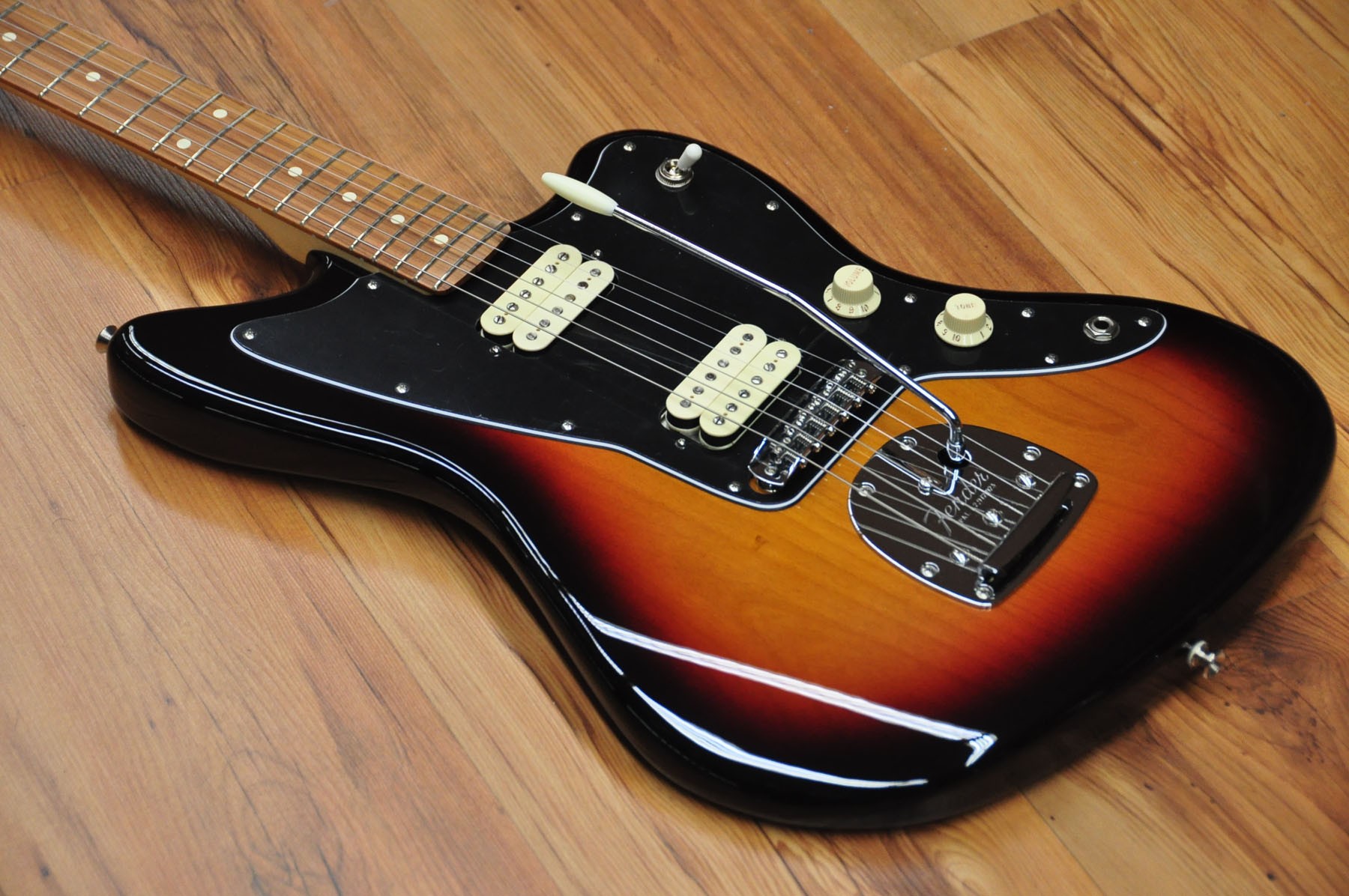 Guitarra eléctrica Fender Player Jazzmaster 3 Tones Sunburst PF. Cuerpo de aliso con acabado brillante, mástil de arce y diapasón de pau ferro. Esta guitarra posee un sonido grueso y denso gracias a la nueva serie de pastillas hambucker Player Alnico 2, pero sin dejar de lado el tono Fender flexible y auténtico gracias al selector push/pull para dividir la pastilla del puente.