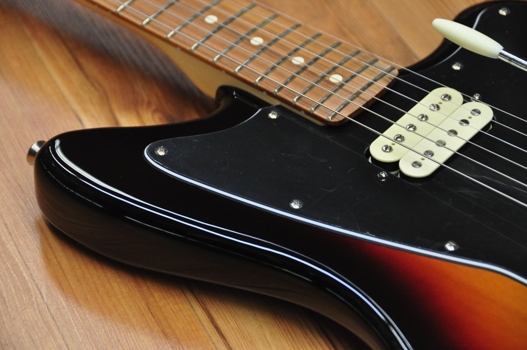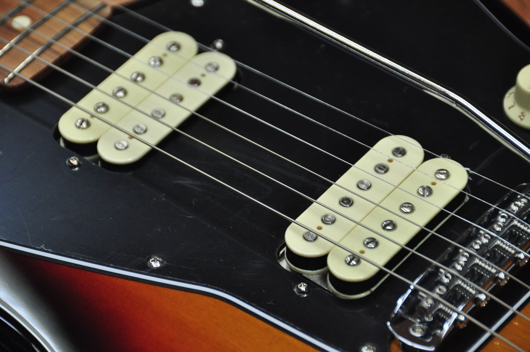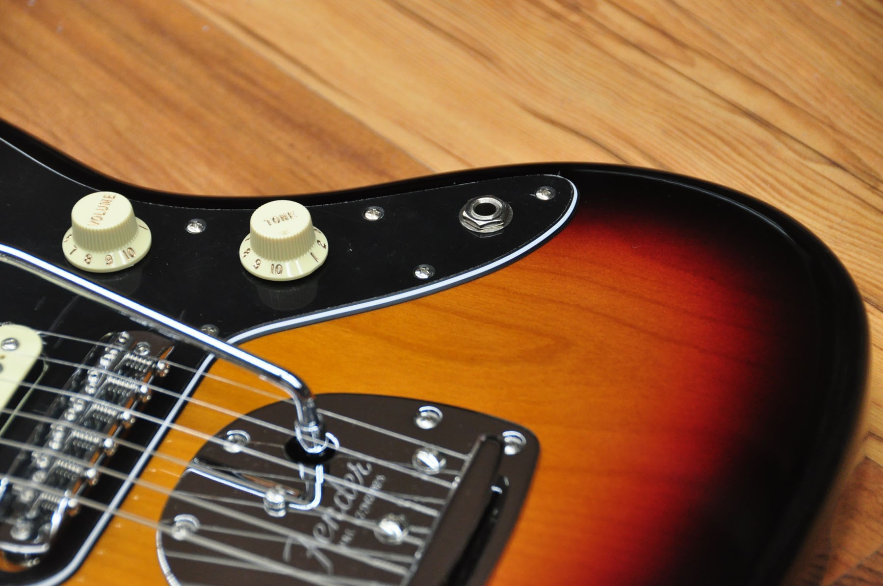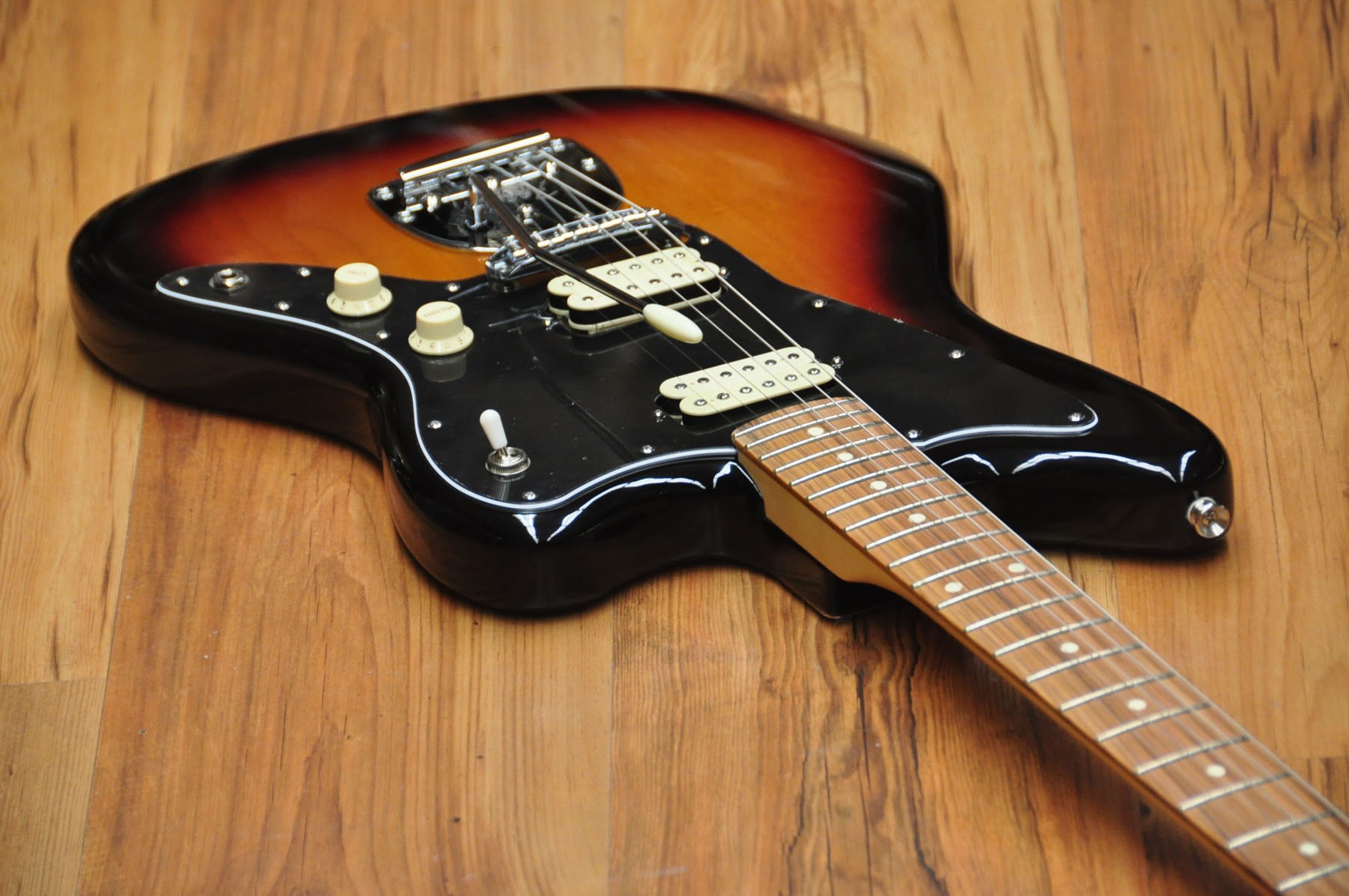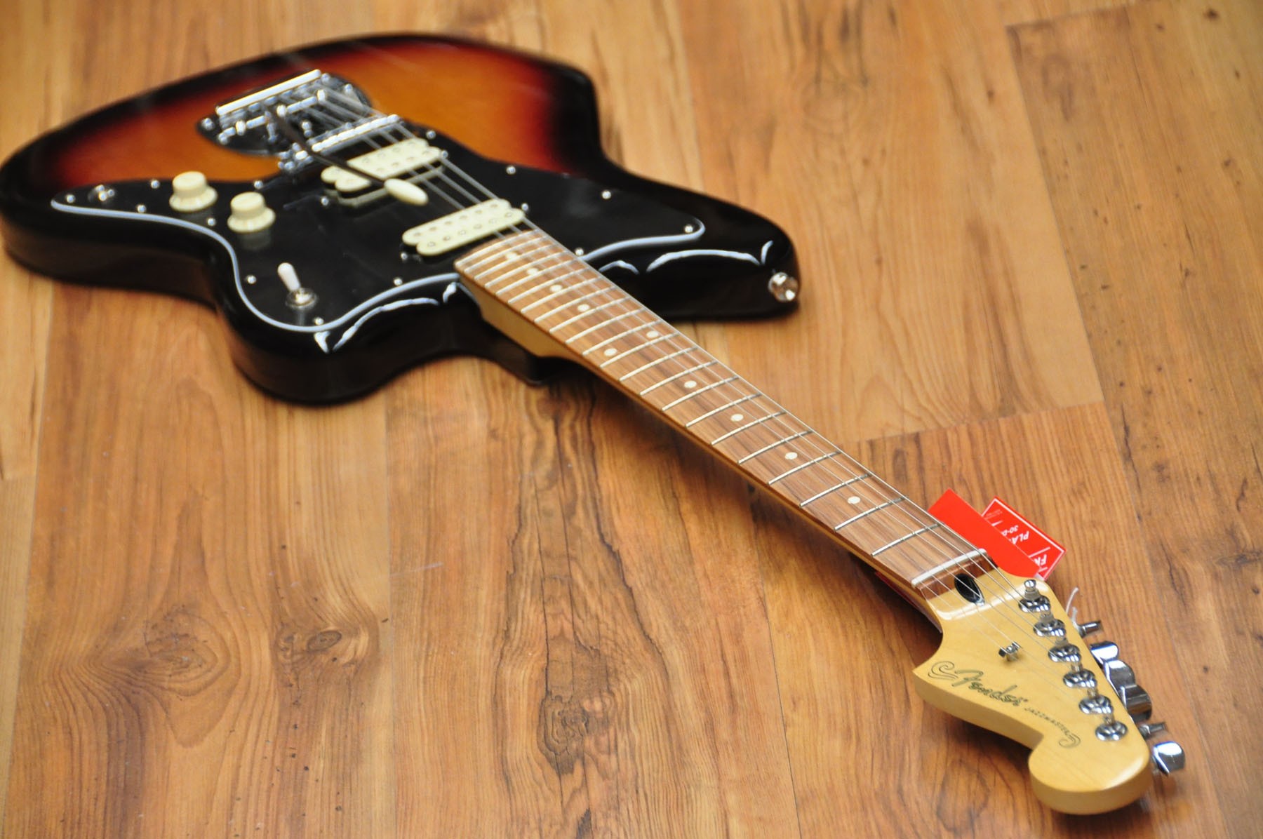 Guitarra eléctrica Fender Player Jazzmaster 3 Tones Sunburst PF. Cuerpo de aliso con acabado brillante, mástil de arce y diapasón de pau ferro. Esta guitarra posee un sonido grueso y denso gracias a la nueva serie de pastillas hambucker Player Alnico 2, pero sin dejar de lado el tono Fender flexible y auténtico gracias al selector push/pull para dividir la pastilla del puente.