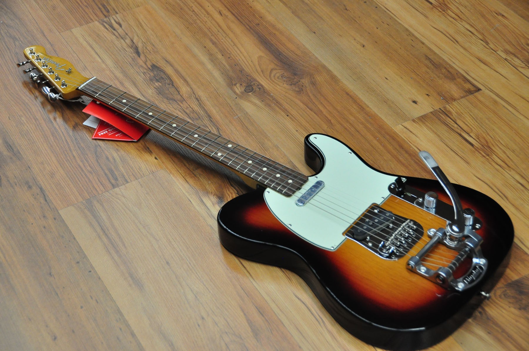 VINTAGE STYLE FOR THE MODERN ERA Para los músicos que desean el estilo y el sonido de la época dorada de Fender, hemos creado la Telecaster Vintera 60 Bigsby. Equipada con las codiciadas características que definieron la década, incluido el perfil del mástil, pastillas especialmente diseñadas y un tremolo Bigsby, la guitarra tiene todo el mordiente y toque que hizo de la Telecaster una leyenda. Para un tono auténtico de estilo vintage, recreamos nuestro conjunto favorito de pastillas Telecaster de los años 60. Twangy y articuladas, tienen el sonido crujiente y gruñón que puso a Fender en el mapa musical. El mástil grueso con forma de C de primeros de los 60, tiene un diapasón de 7.25 de radio con 21 trastes de estilo vintage para una sensación de toque clásico. Un vibrato Bigsby permite hacer todos los efectos sin comprometer las características del twang de la Tele®, mientras que el clavijero de estilo vintage brinda una estética original, un rendimiento sólido y estabilidad de afinación. Otras características incluyen botones de correa de estilo vintage, herrajes cromados y placa de mástil de cuatro pernos. Peso: 3,6Kg. Incluye funda de lujo.