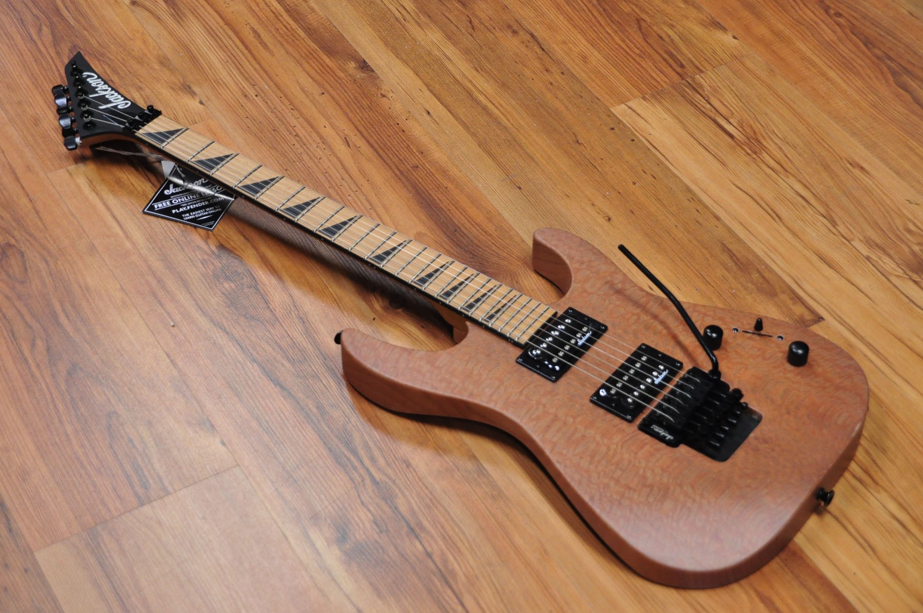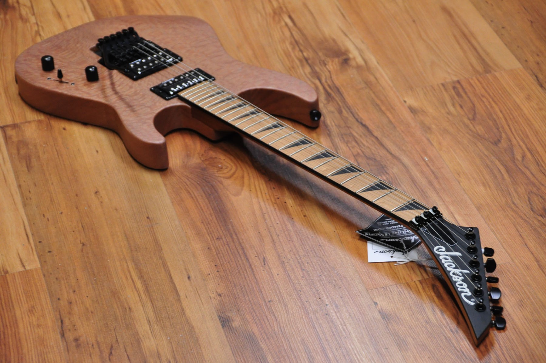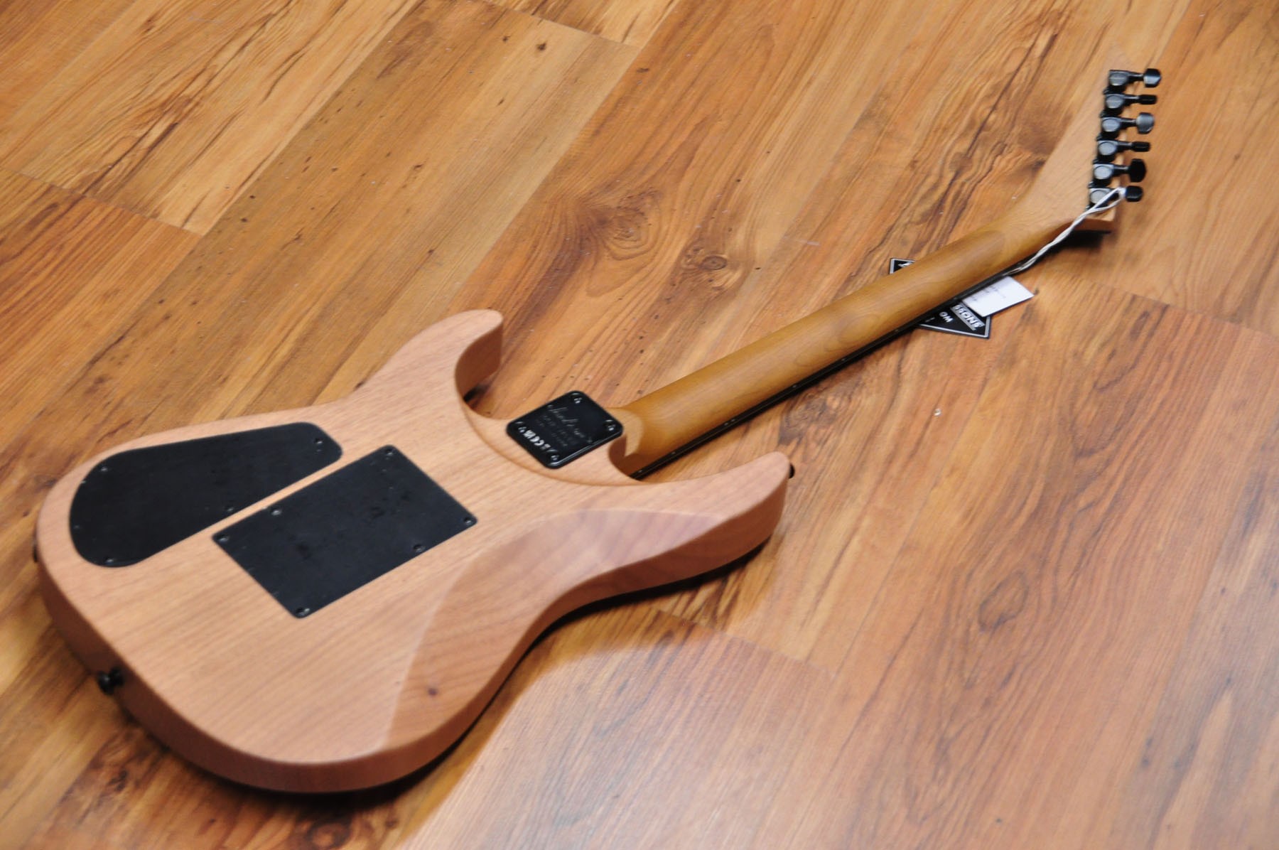 The Limited Edition JS Series Dinky JS42 DSM features a Mahogany body with a beautiful Lacewood top and bolt-on caramelized Maple neck. Hosting 24 jumbo frets and pearloid sharkfin inlays, the 12”-16” compound radius caramelized Maple fingerboard gradually flattens toward the heel from its more rounded profile at the nut. This makes for comfortable and natural-feeling chording and riffing near the nut, with optimal shred articulation and bending nearer the heel. Dual Jackson high-output humbucking pickups with ceramic magnets erupt with hot, crunchy tone perfect for any flavour of hard rock or heavy metal. Dial in tone to your preference with three-way blade switching and single volume and tone controls, and wail away at will as the Jackson-branded Floyd Rose-licensed doublelocking bridge provides dynamic tremolo action with tuning stability.