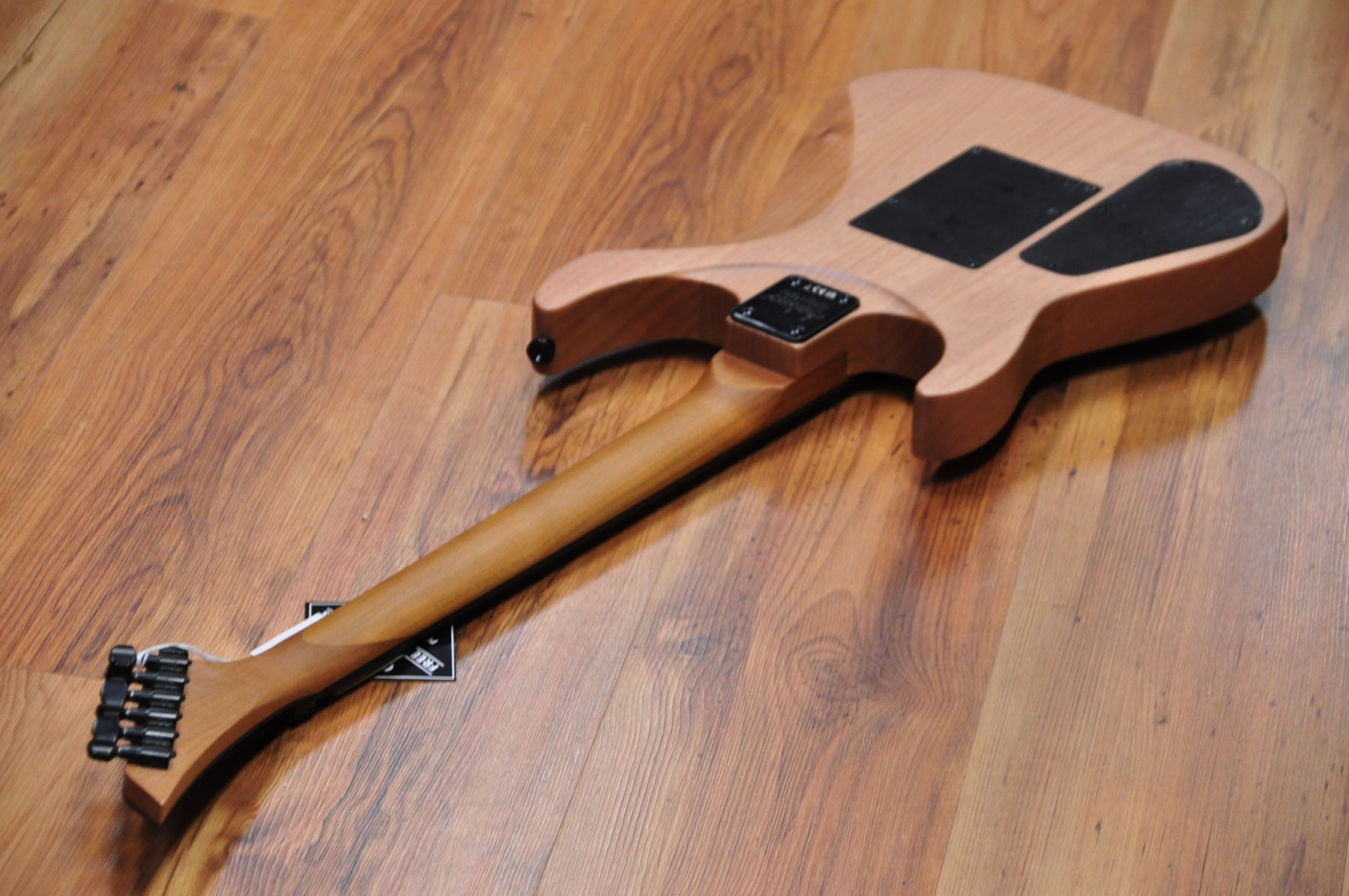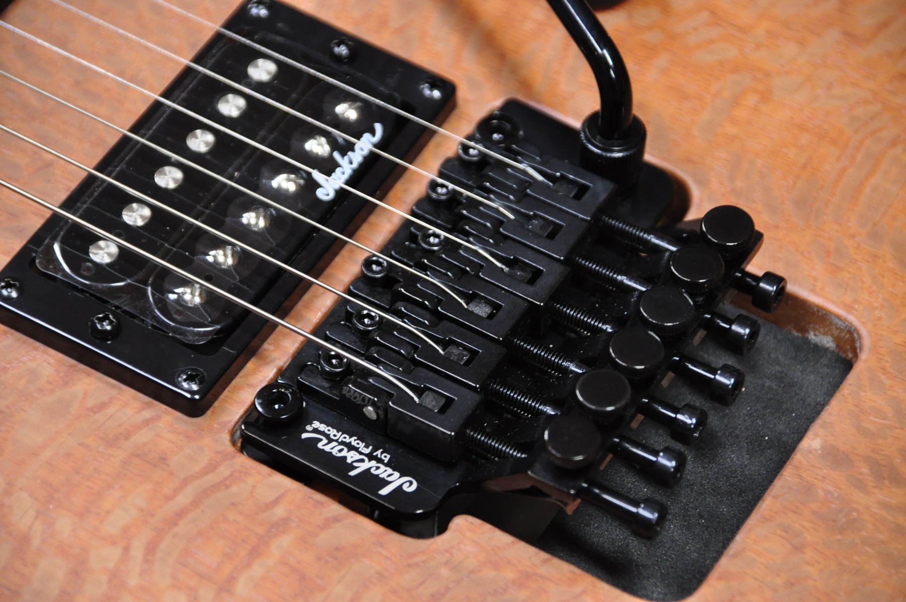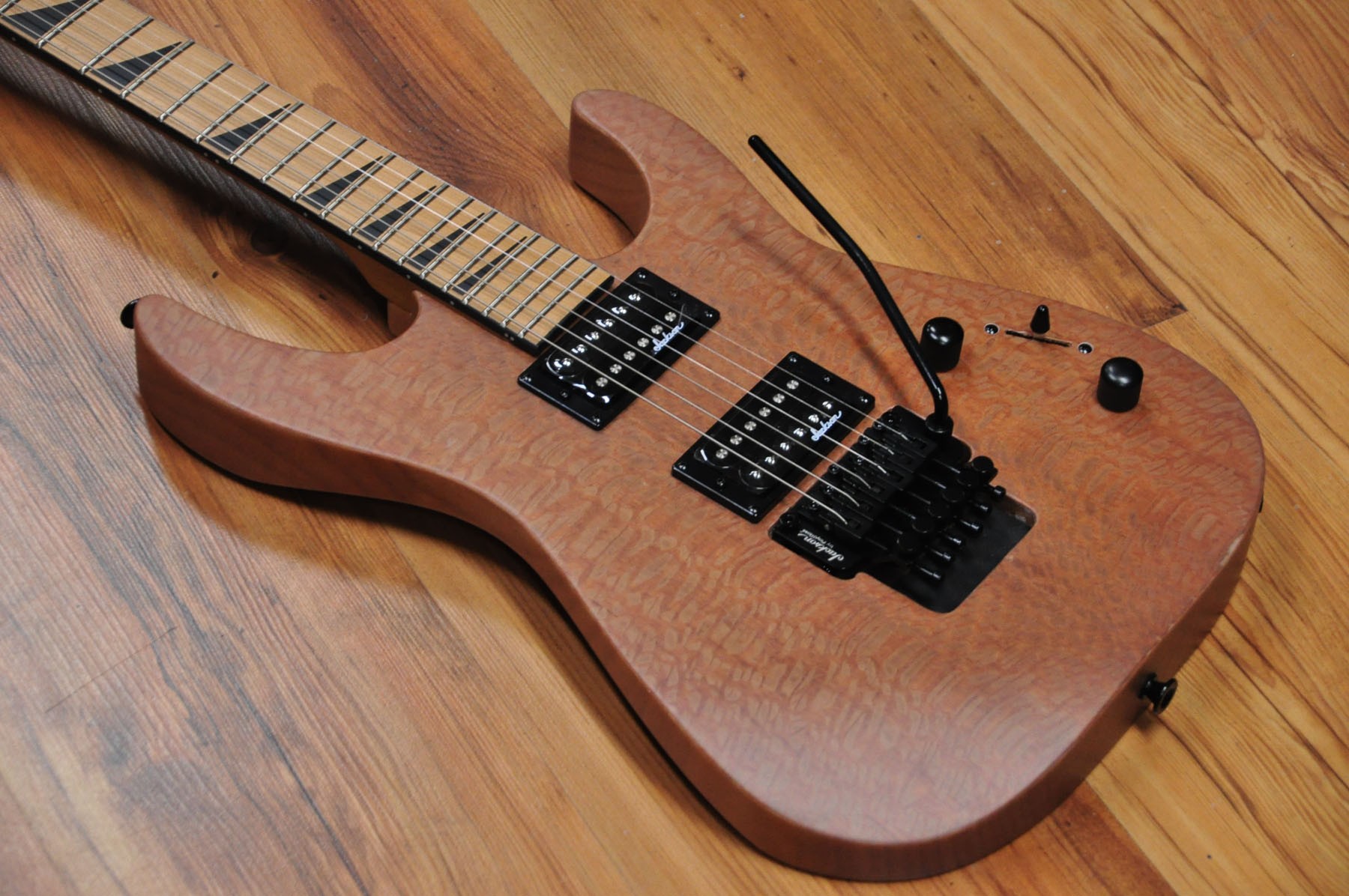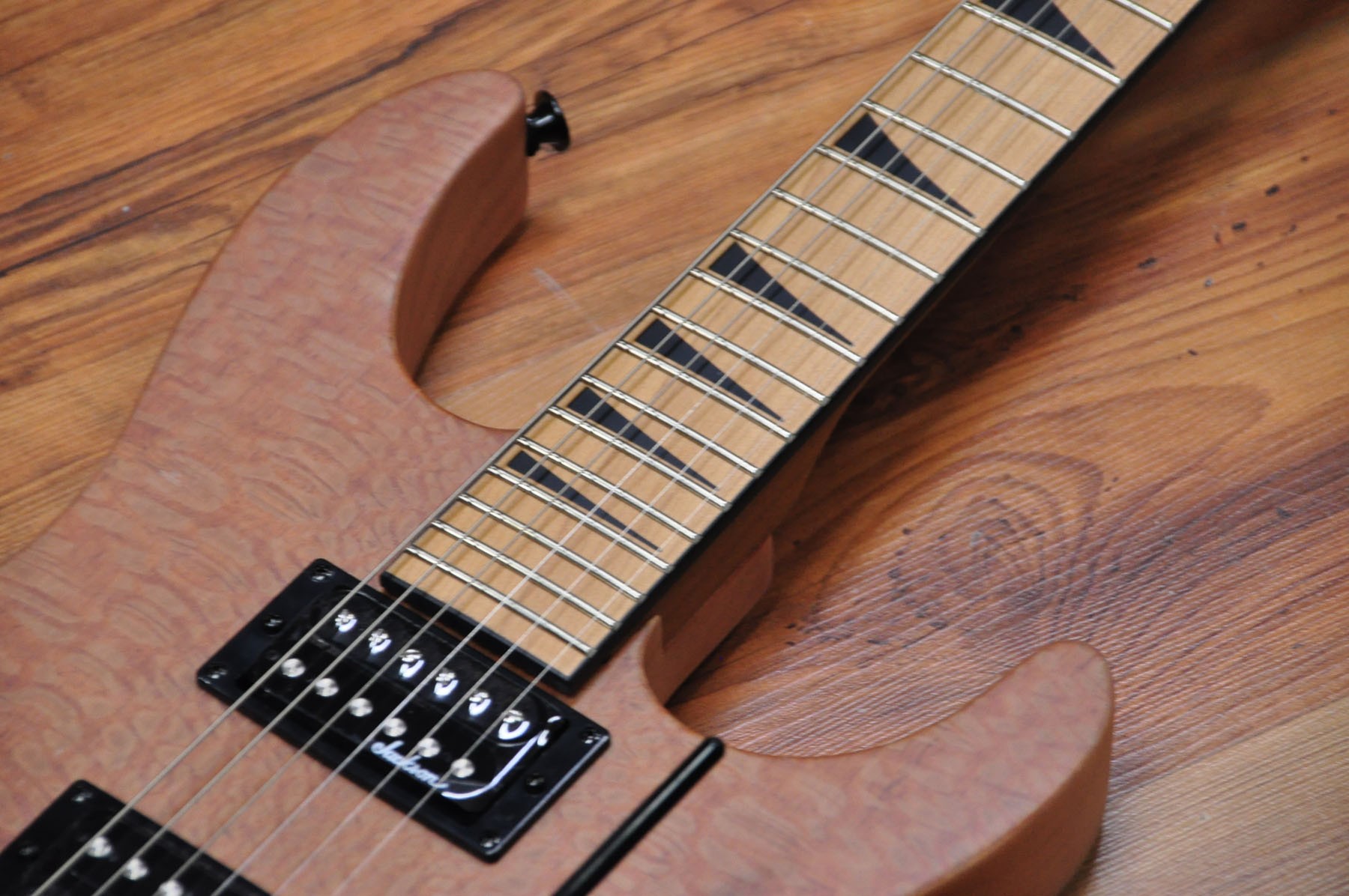 The Limited Edition JS Series Dinky JS42 DSM features a Mahogany body with a beautiful Lacewood top and bolt-on caramelized Maple neck. Hosting 24 jumbo frets and pearloid sharkfin inlays, the 12”-16” compound radius caramelized Maple fingerboard gradually flattens toward the heel from its more rounded profile at the nut. This makes for comfortable and natural-feeling chording and riffing near the nut, with optimal shred articulation and bending nearer the heel. Dual Jackson high-output humbucking pickups with ceramic magnets erupt with hot, crunchy tone perfect for any flavour of hard rock or heavy metal. Dial in tone to your preference with three-way blade switching and single volume and tone controls, and wail away at will as the Jackson-branded Floyd Rose-licensed doublelocking bridge provides dynamic tremolo action with tuning stability.