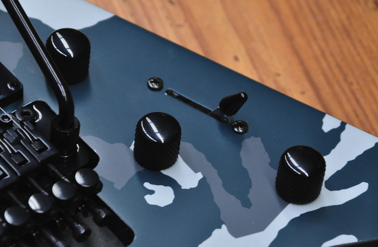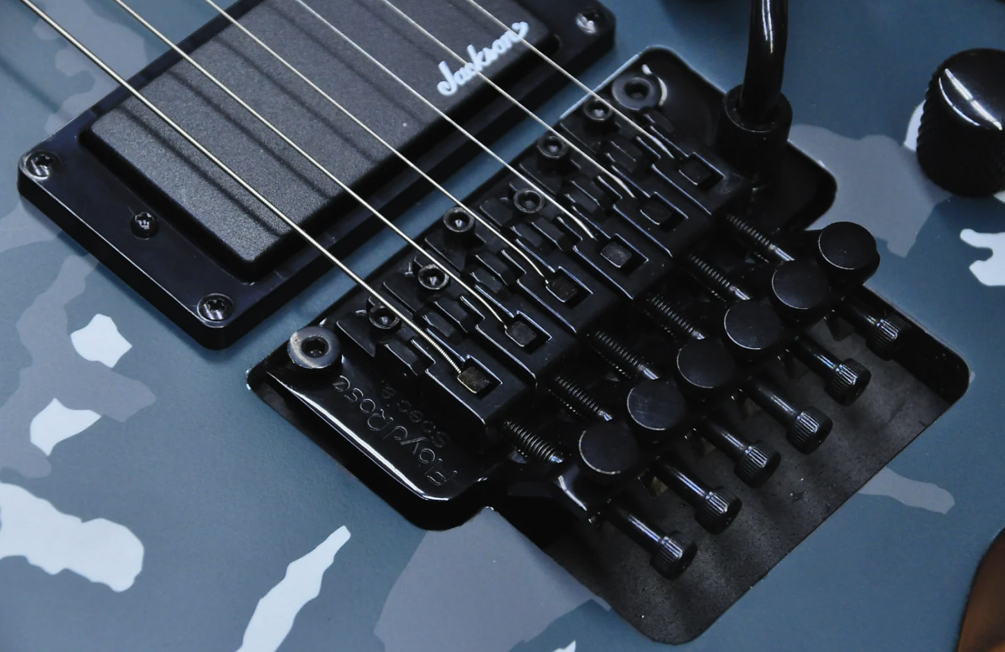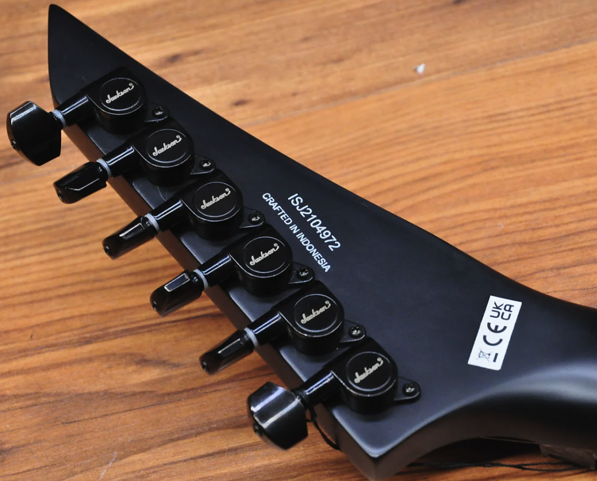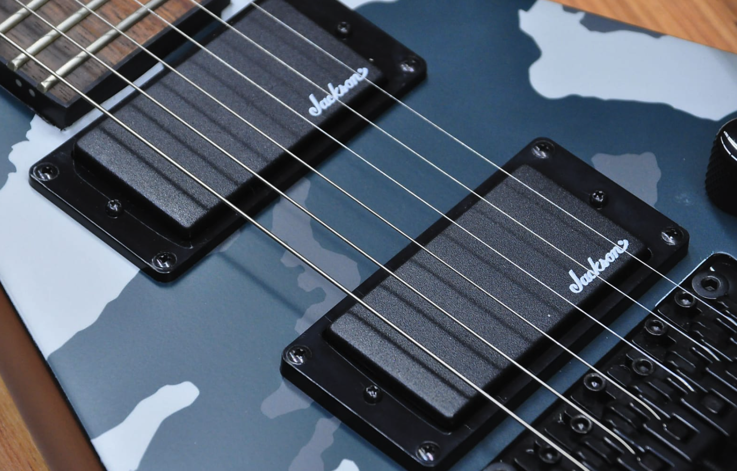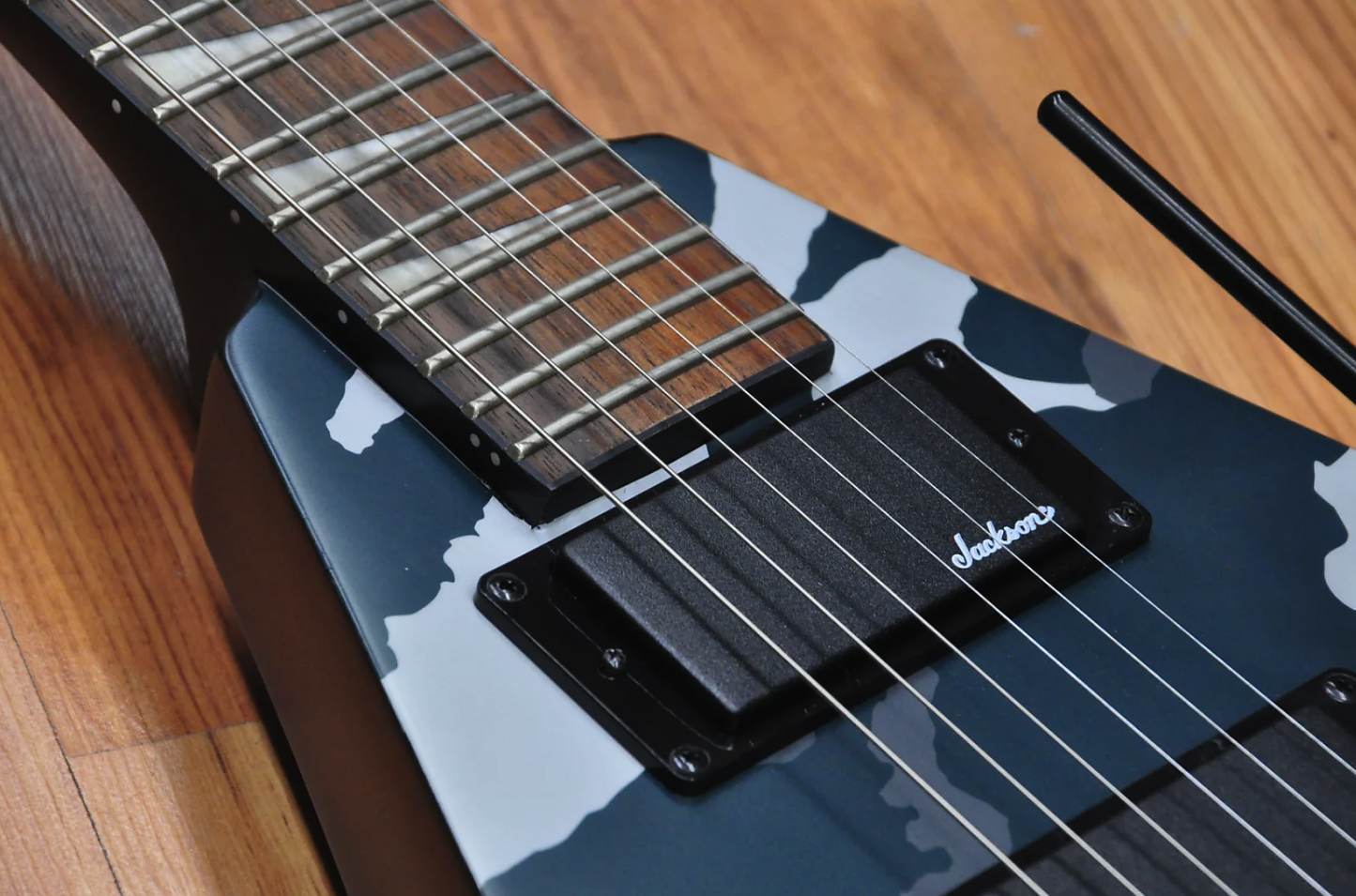 Despite its camouflage finishes, the Jackson X Series Rhoads RRX24 Camo is sure to command attention in Black Camo or Woodland Camo with a matching camo reverse pointy headstock and black hardware.