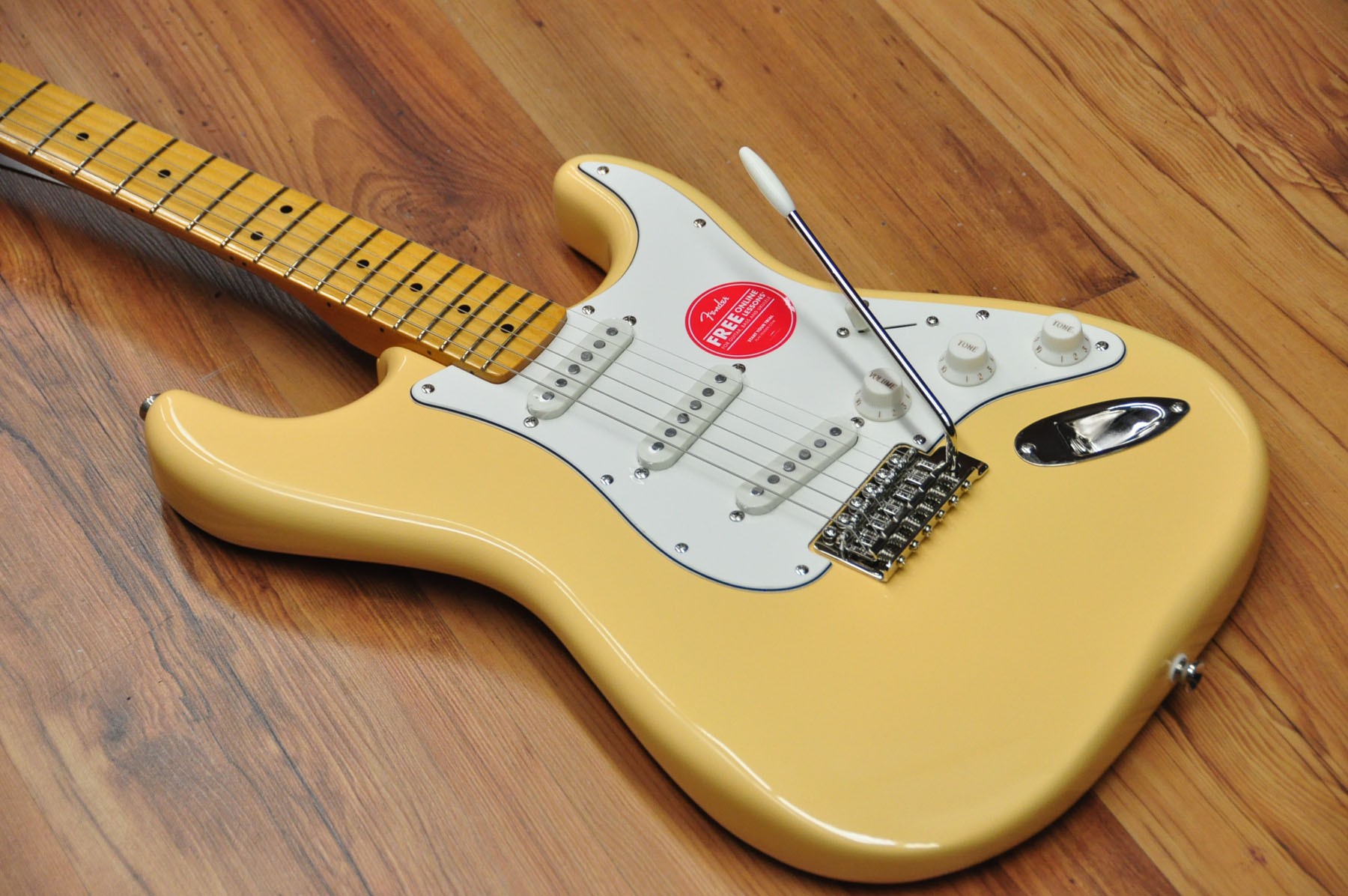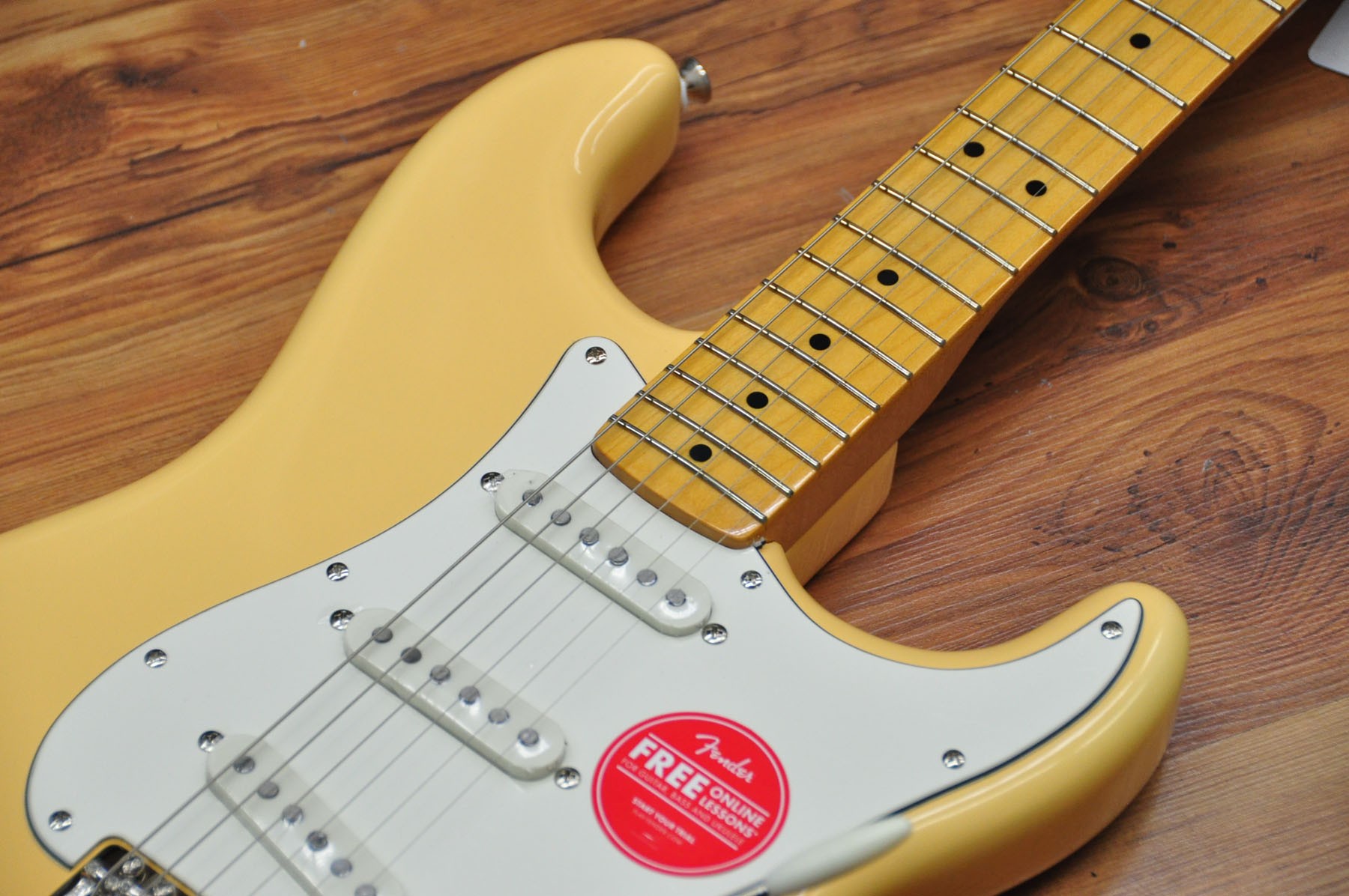 El mástil de este modelo tiene un acabado brillante cuya tonalidad vintage le da un magnífico aspecto envejecido.