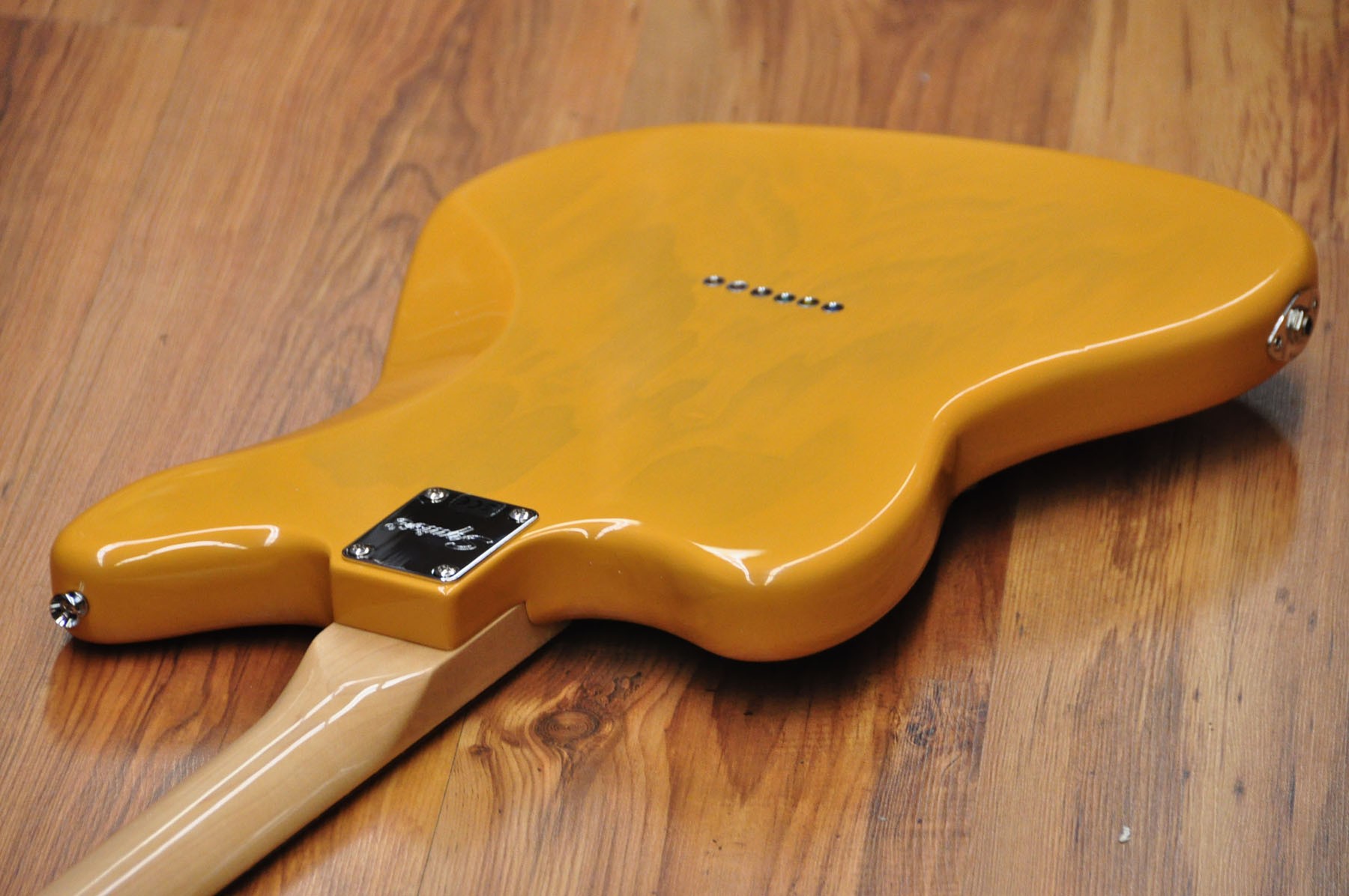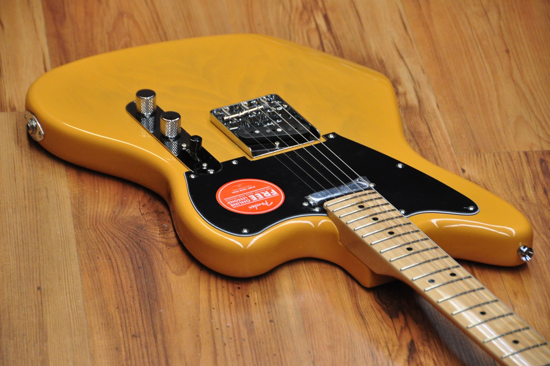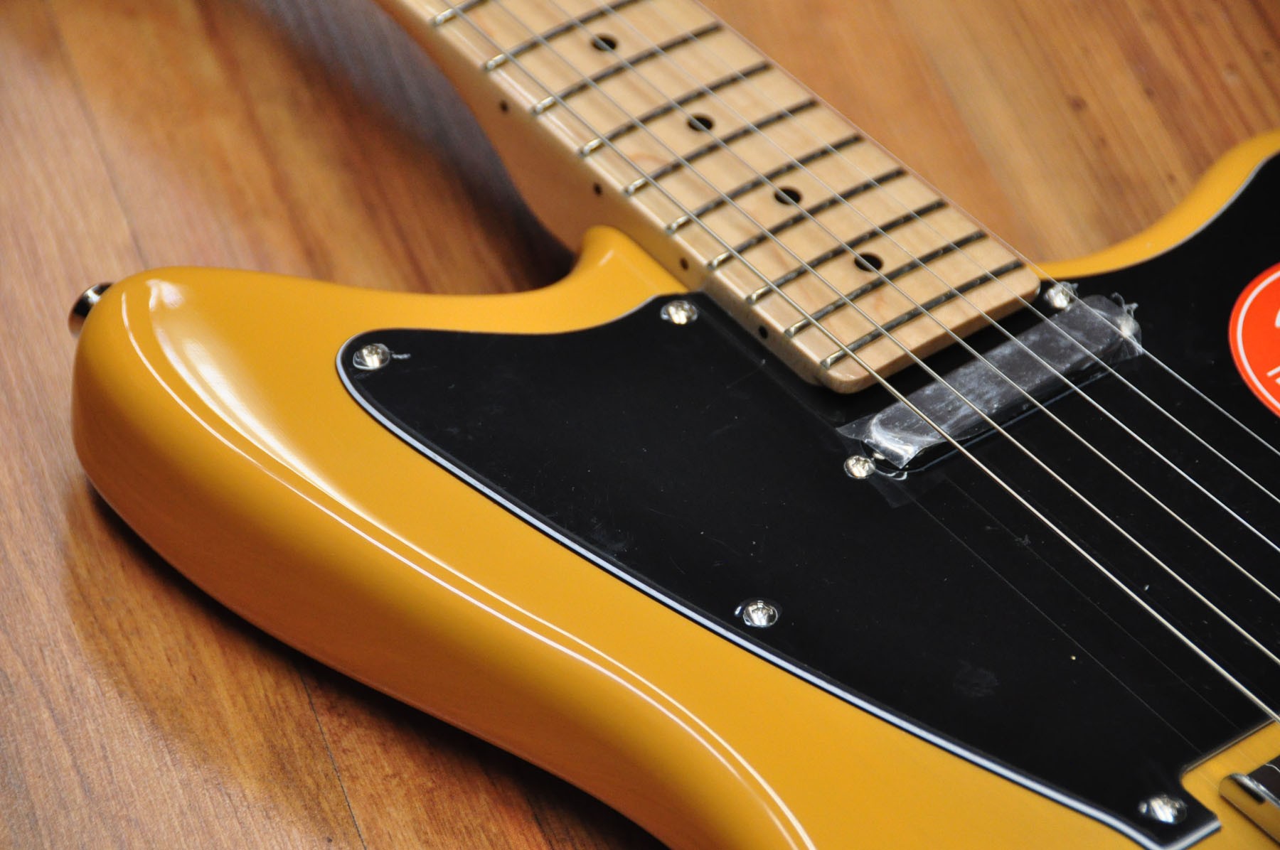 CARACTERÍSTICAS Componentes de Telecaster Forma del cuerpo asimétrica Pastillas de bobina simple alnico diseñadas por Fender Puente de cuerda a través del cuerpo Herrajes de cromo