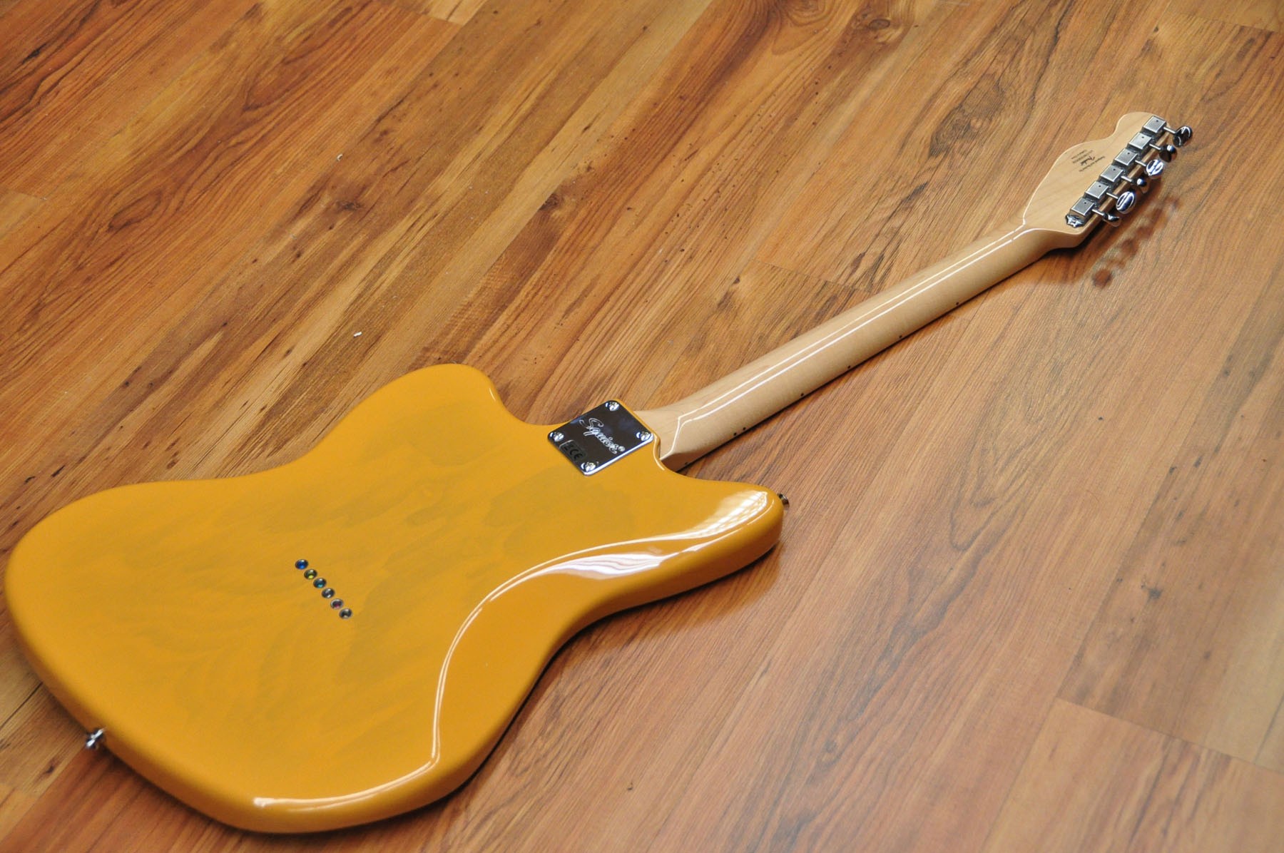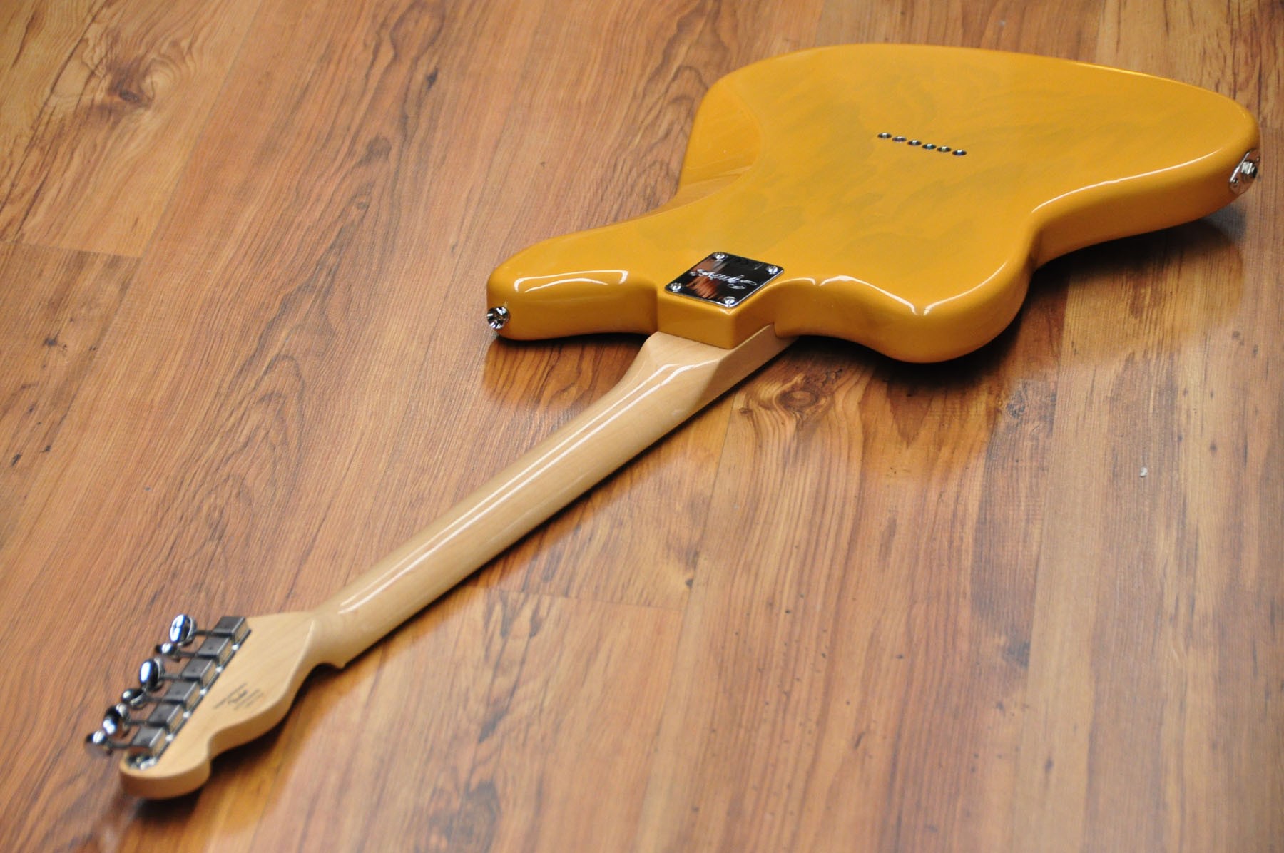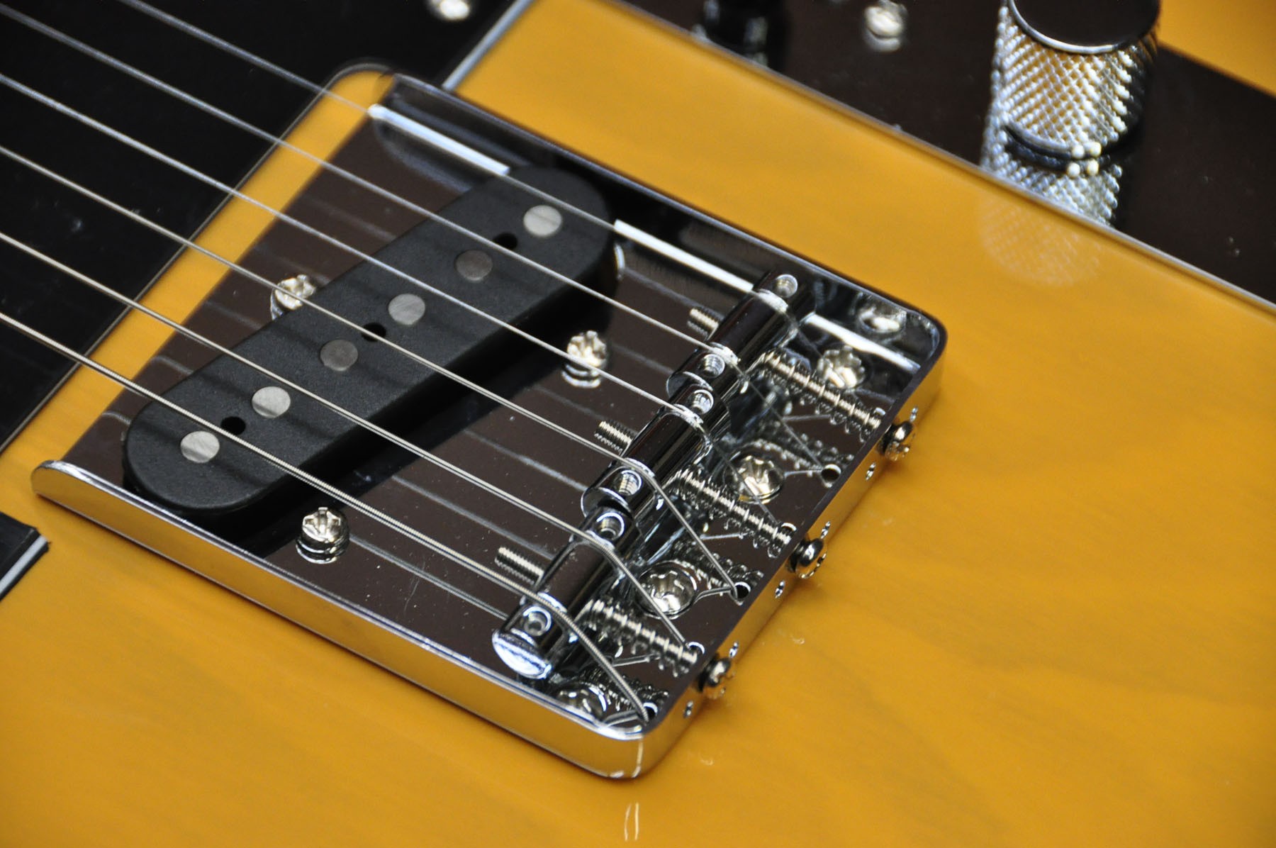 CARACTERÍSTICAS Componentes de Telecaster Forma del cuerpo asimétrica Pastillas de bobina simple alnico diseñadas por Fender Puente de cuerda a través del cuerpo Herrajes de cromo