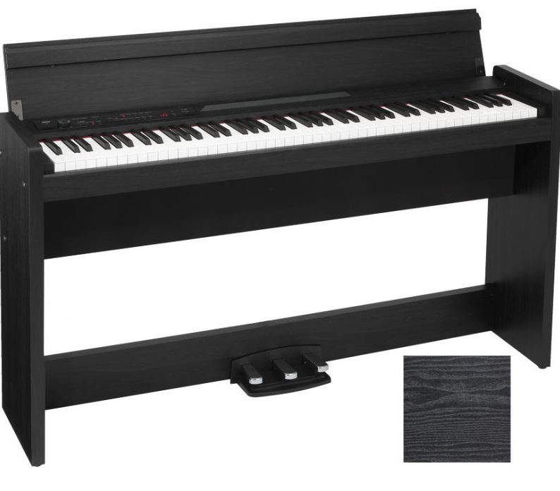 Nueva versión del piano digital LP-380, ahora con puerto MIDI/Audio a través de USB. El LP-380 es un piano digital que está diseñado para que su estilo realce la decoración de tu casa. Con sólo 26 cm de profundidad, es lo suficientemente delgado para caber en cualquier lugar. La tapa de madera del teclado es plana en la parte superior, permitiendo que el instrumento sea un elemento más de la decoración de tu habitación cuando no lo estés tocando. Teniendo en cuenta la seguridad, la cubierta utiliza un mecanismo de cierre lento para asegurar que se cierra suavemente. El chasis delgado y elegante proyecta una sensación de estabilidad. El teclado RH3, tres pedales y altavoces de gran diámetro aseguran una excelente experiencia de interpretación de piano. – Teclado: 88 teclas (A0-C8), RH3 (Real Weighted Hammer Action 3, acción real contrapesada). Selección de Toque: Ligera, Normal, Fuerte. Tono: Transposición, Afinación. Temperamento: 9 tipos. Generación de Sonido: Piano Estéreo. Polifonía Máxima: 120 voces. Sonido: 30 (10 x 3 Bancos). Piano acústico x 5, Electric Grand, Piano eléctrico x 6, Clavicordio, Clavi x 2, Vibráfono, Marimba, Guitarra acústica, órgano Jazz x 3, órgano de tubosx 3, Cuerdas x 3, Coro 3. Efectos: Brilliance, Reverb y Chorus (3 niveles cada uno). Canciones Demo: 30 (canciones Demo de Sonido x 10, canciones Demo de Piano x 20). Metrónomo: Tempo, Compás, Acento, Sonido y Volumen. Conexiones: USB, Line Out, MIDI (In, Out), auriculares x 2, Pedal, Altavoces, DC19V. Amplificación: 22 Vatios × 2. Altavoces: 10cm x 2.Pedales: Damper*, Soft*, Sostenuto (* Soporta medio pedal). Controles: Power, Volume, Piano Song, Transpose, Function, Touch, Brilliance, Reverb, Chorus, Bank, Sound x 10, Up, Down, Metronome. Alimentación: DC 19 V, AC adaptador (incluido). Consumo eléctrico: 15W. Dimensiones: 1,355 × 351 × 772 mm.1,355 × 351 × 936 mm (con la tapa del teclado abierta). Peso: 37 kg (incluyendo soporte). Color: Palisandro negro veteado. Elementos incluidos: adaptador AC, soporte de piano.